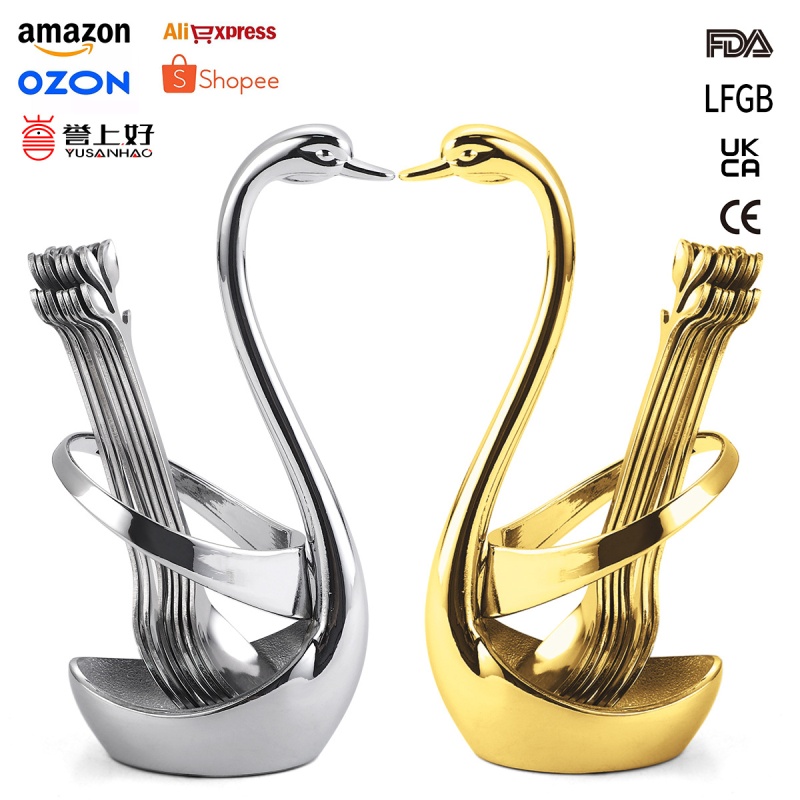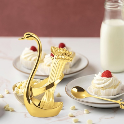 小号天鹅底座水果叉树叶咖啡勺套装不锈钢餐厅酒店摆件餐具收纳架