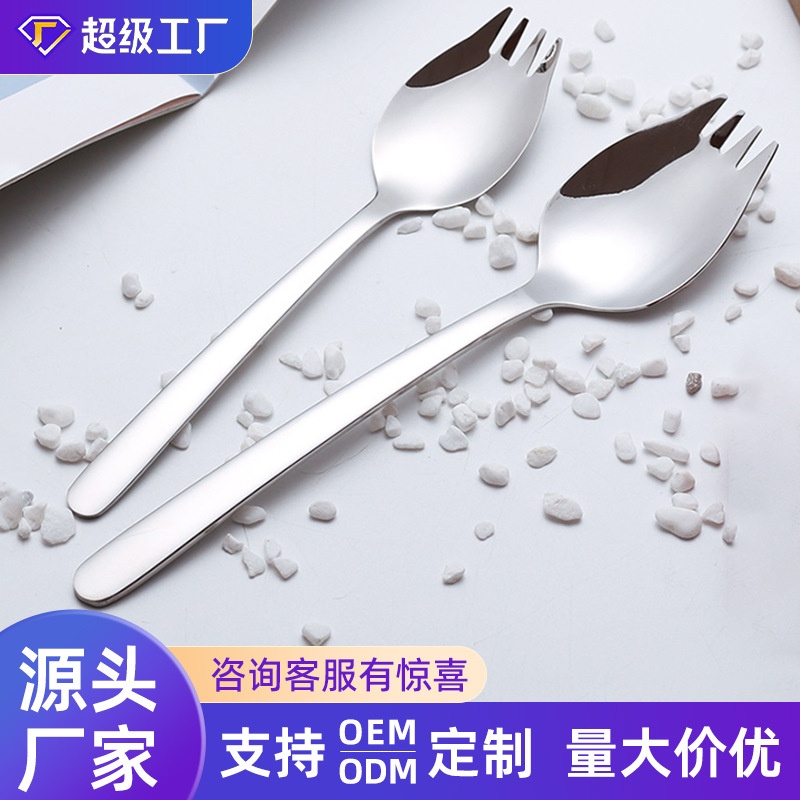 304不锈钢叉勺一体沙拉勺叉两用主餐西餐创意家用甜品水果叉子