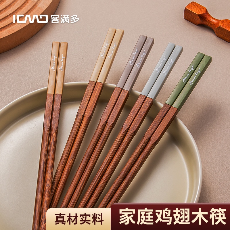 客满多红檀木筷家用五色分餐筷子一人一筷鸡翅木原木筷原生态健康