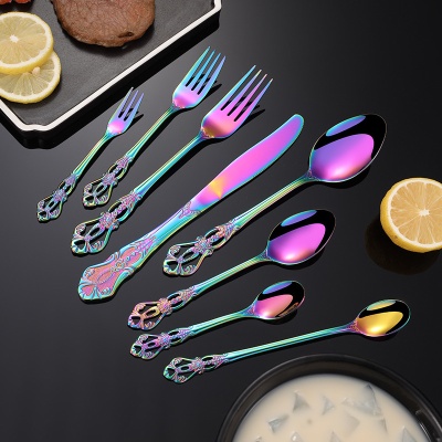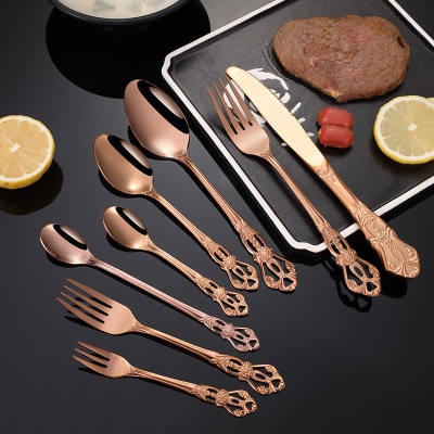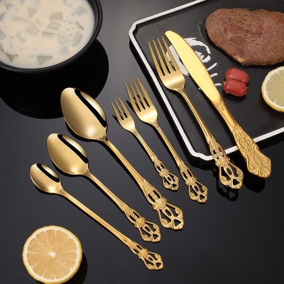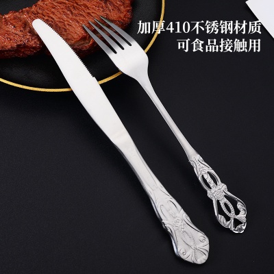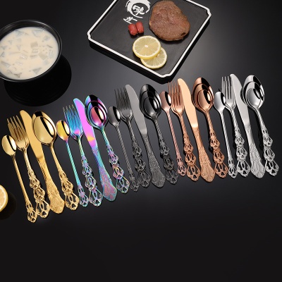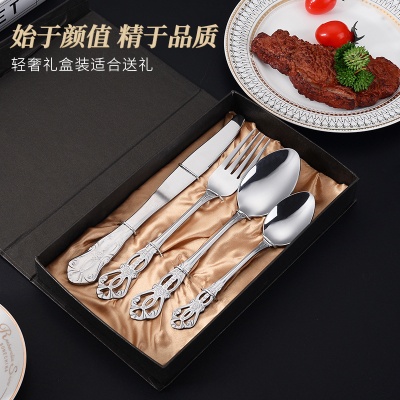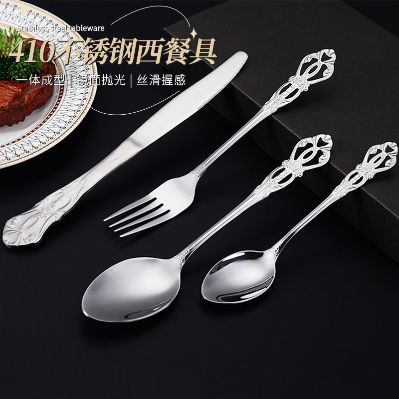 批发皇庭不锈钢刀叉勺四件套餐具镂空浮雕搅拌勺欧式牛排刀叉套装