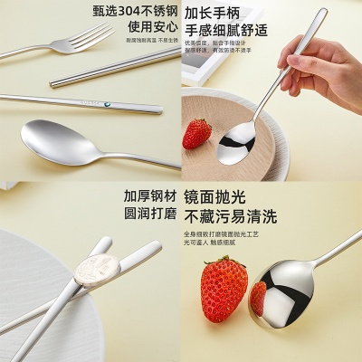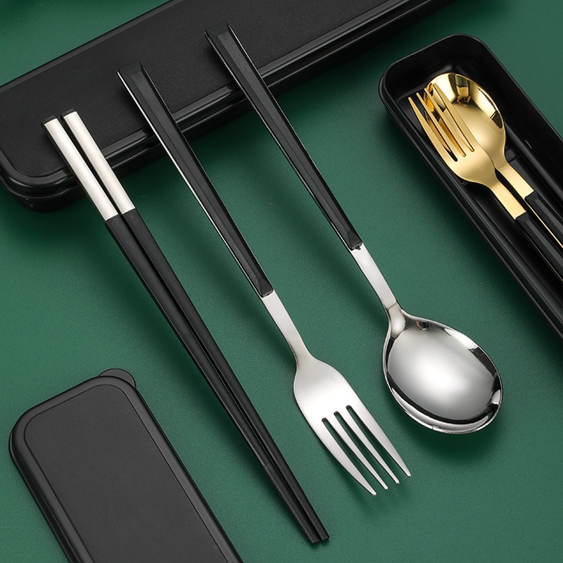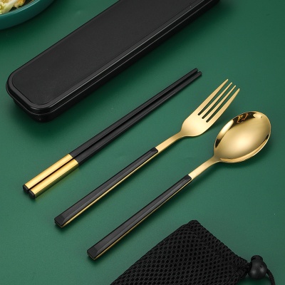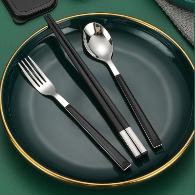 304不锈钢便携餐具磨砂手柄勺叉筷子套装学生便携叉勺筷三件套