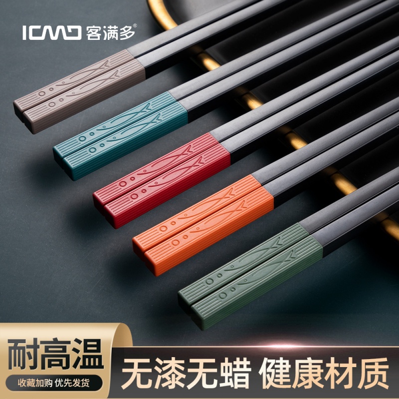 客满多筷子家用防滑耐高温网红日式轻奢风合金筷子家庭新款