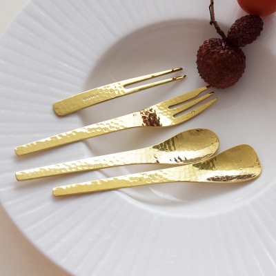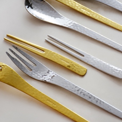 日本风设计金属餐具 锤目纹勺子蛋糕水果叉不锈钢甜品咖啡勺茶匙