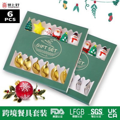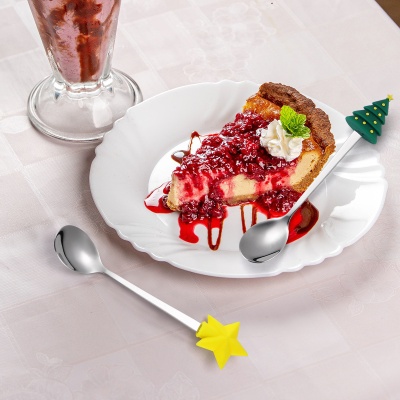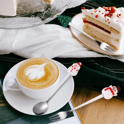 卡通硅胶不锈钢勺子叉子餐具套装蛋糕水果叉家用圣诞礼物搅拌咖啡