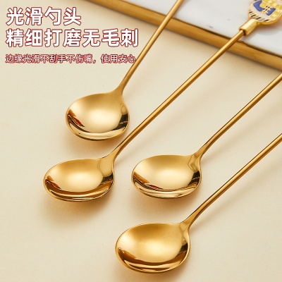 韩式304不锈钢筷子刀叉勺 家用金色长柄吃饭搅拌甜品牛排西餐餐具