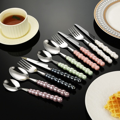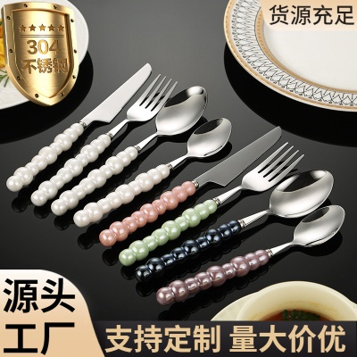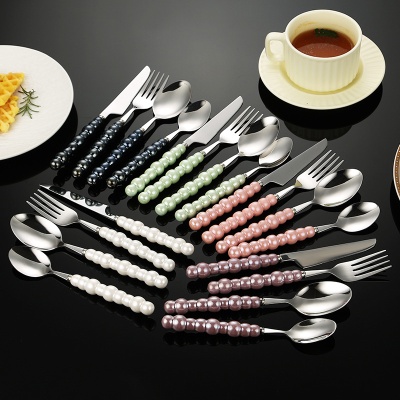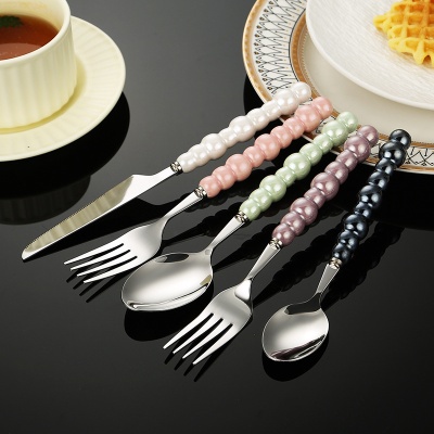 高颜值陶瓷柄304不锈钢牛排刀叉勺可爱珍珠釉勺子叉子创意甜品勺