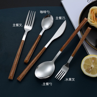 礼品盒木纹韩式勺夹柄家用刀叉勺餐具 酒店牛排刀 套装不锈钢勺子