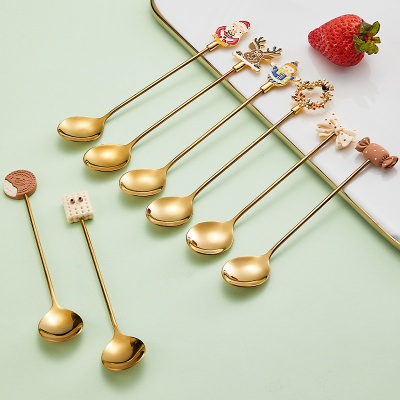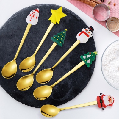 304不锈钢现代简约卡通咖啡勺 家用装饰创意可爱甜品搅拌圣诞勺子