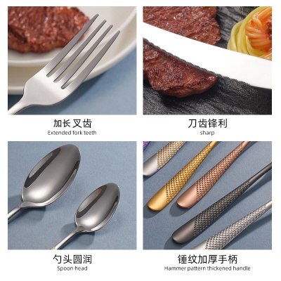 跨境不锈钢餐具刀叉勺子高颜值锤纹星钻甜品牛排西餐spoons套装