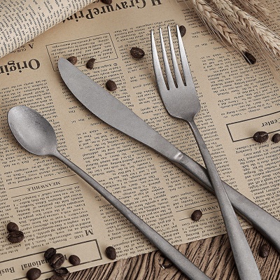 复古牛排刀叉勺套装做旧筷子 304不锈钢甜品勺商用怀旧雪花砂餐具
