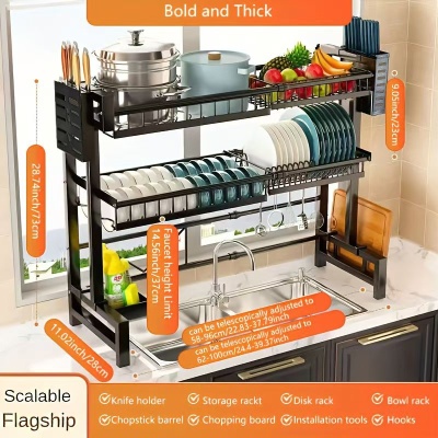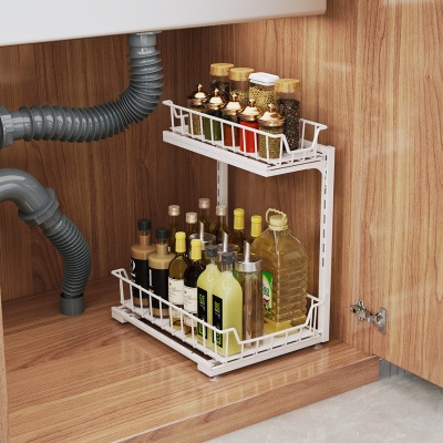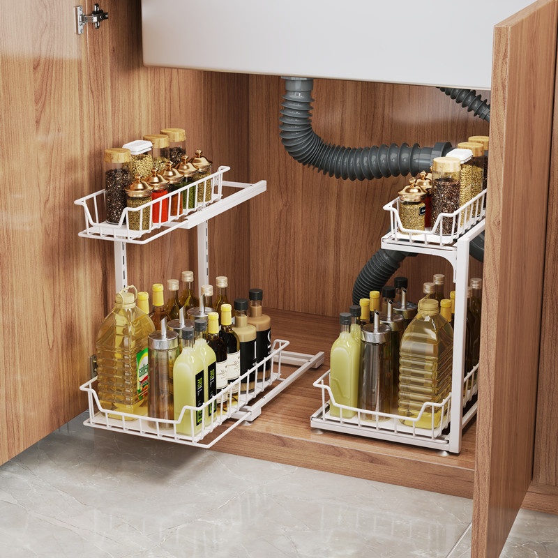 高度可调节厨房下水槽置物架调料清洁多功能抽拉式收纳橱柜分层架