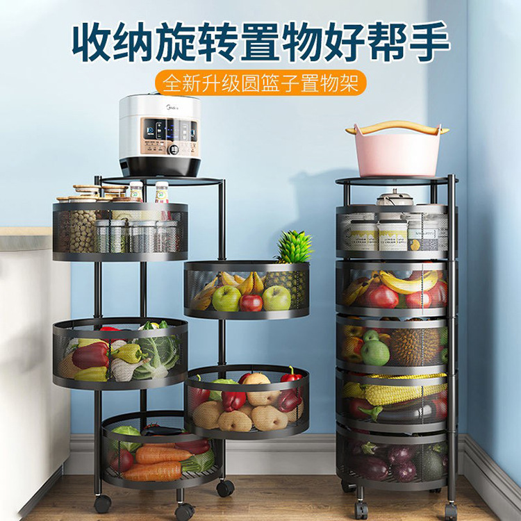 厂家直供圆形旋转置地水果蔬菜置物架子可移动卧室厨房客厅收纳架