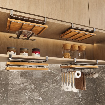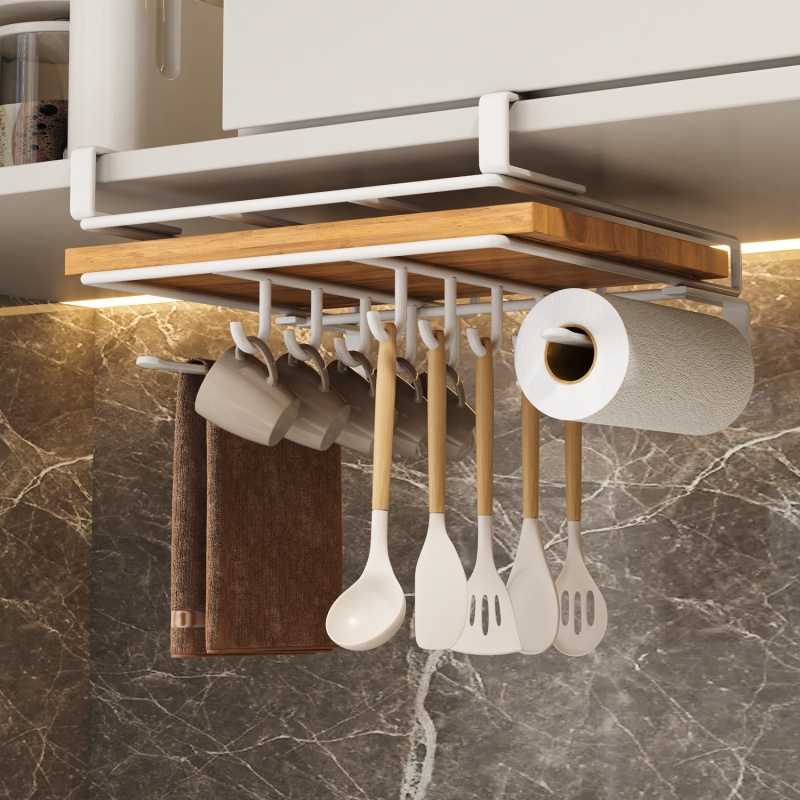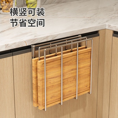 免打孔厨房置物架橱柜吊柜下挂架不锈钢砧板架锅盖纸巾菜板收纳架