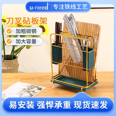 厨房铁艺刀筷置物架多功能刀具砧板收纳架轻奢高颜值刀具沥水架