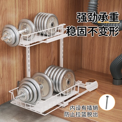 厨房可伸缩收纳架免打孔抽屉式橱柜碗碟调料拉篮下水槽抽拉置物架