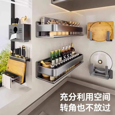 厨房置物架调味料品罐收纳架子墙上免打孔壁挂式家用多功能佐料架
