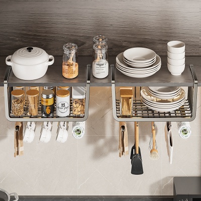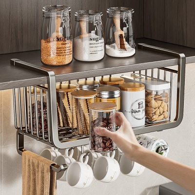 蓝藤厨房置物架收纳悬挂分层挂篮免打孔橱柜内吊柜下挂篮挂架