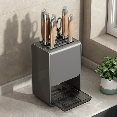 枪灰色厨房刀架置物架台面放菜刀架壁挂多功能筷子刀具一体收纳架