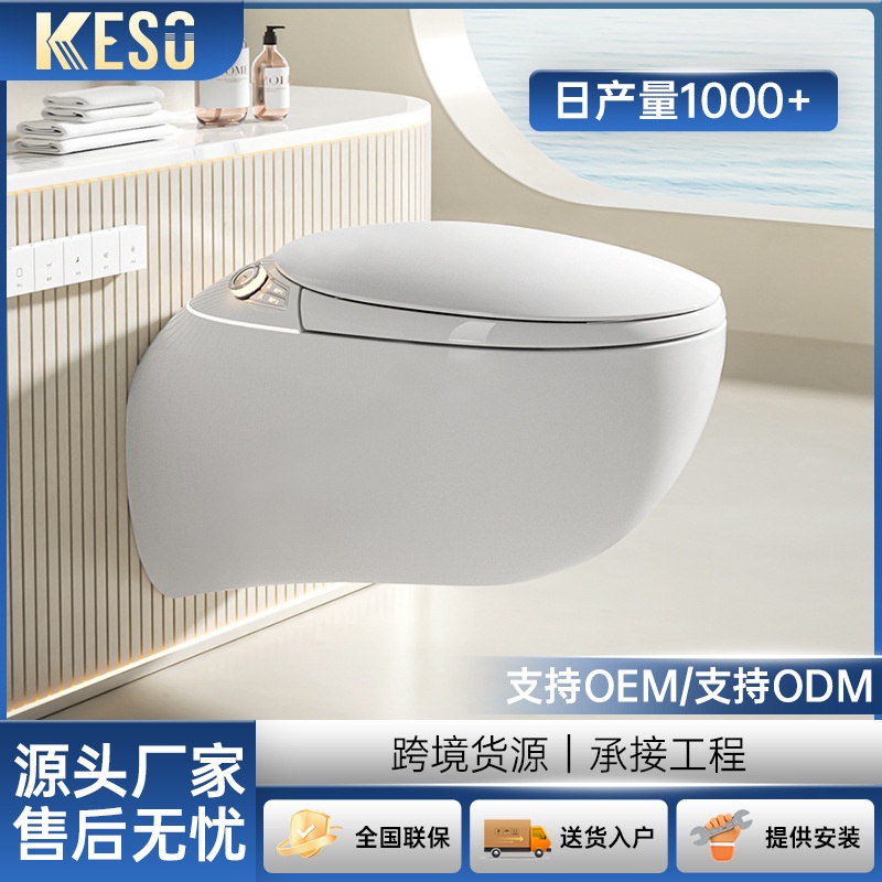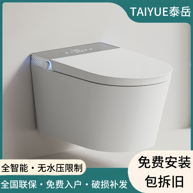 壁挂式圆形智能全自动马桶按压一体式无需预埋安全墙排通用坐便器