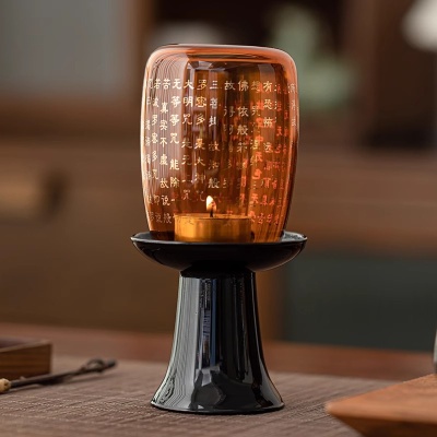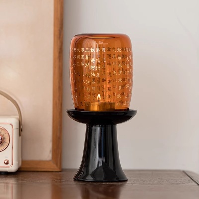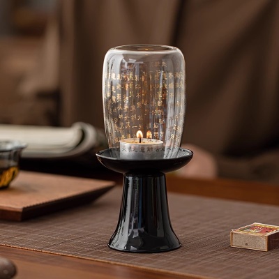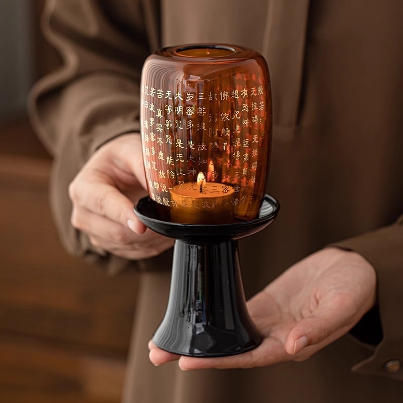 心经蜡烛烛台家用香薰玻璃摆件复古中式禅意氛围灯古风玻璃烛台