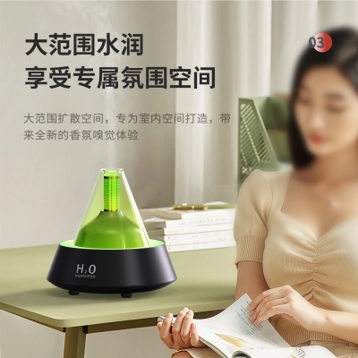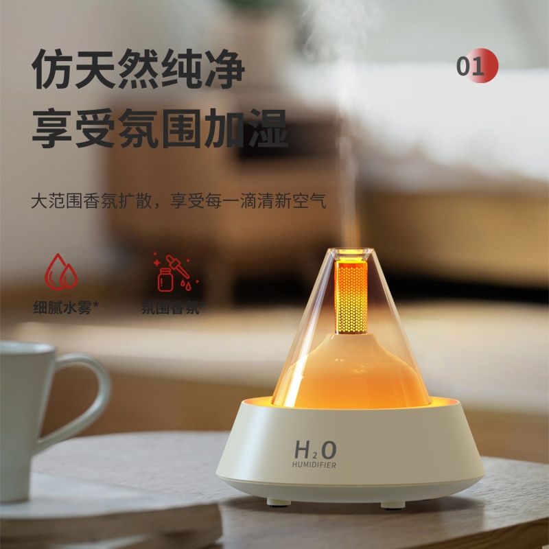 跨境创意火山香薰机家用卧室桌面大容量雾化器熔岩火焰香薰加湿器