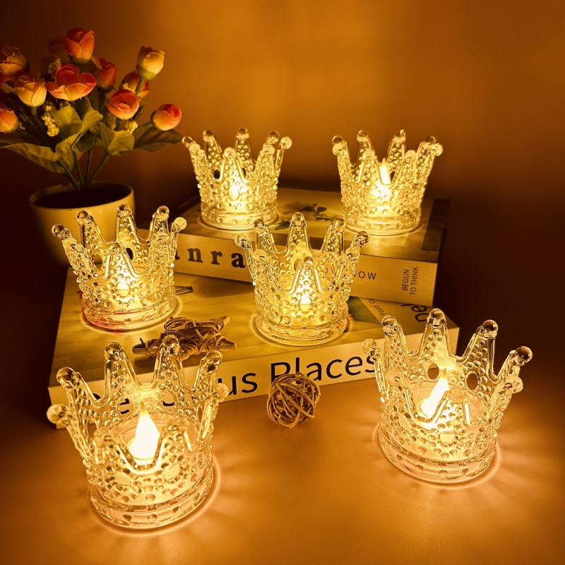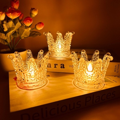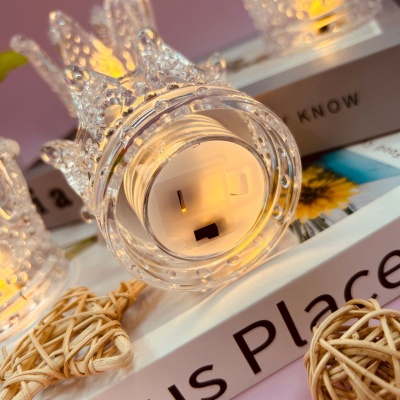跨境皇冠水滴小夜灯LED电子蜡烛灯桌面透明摆件圣诞节装饰氛围灯