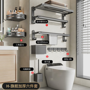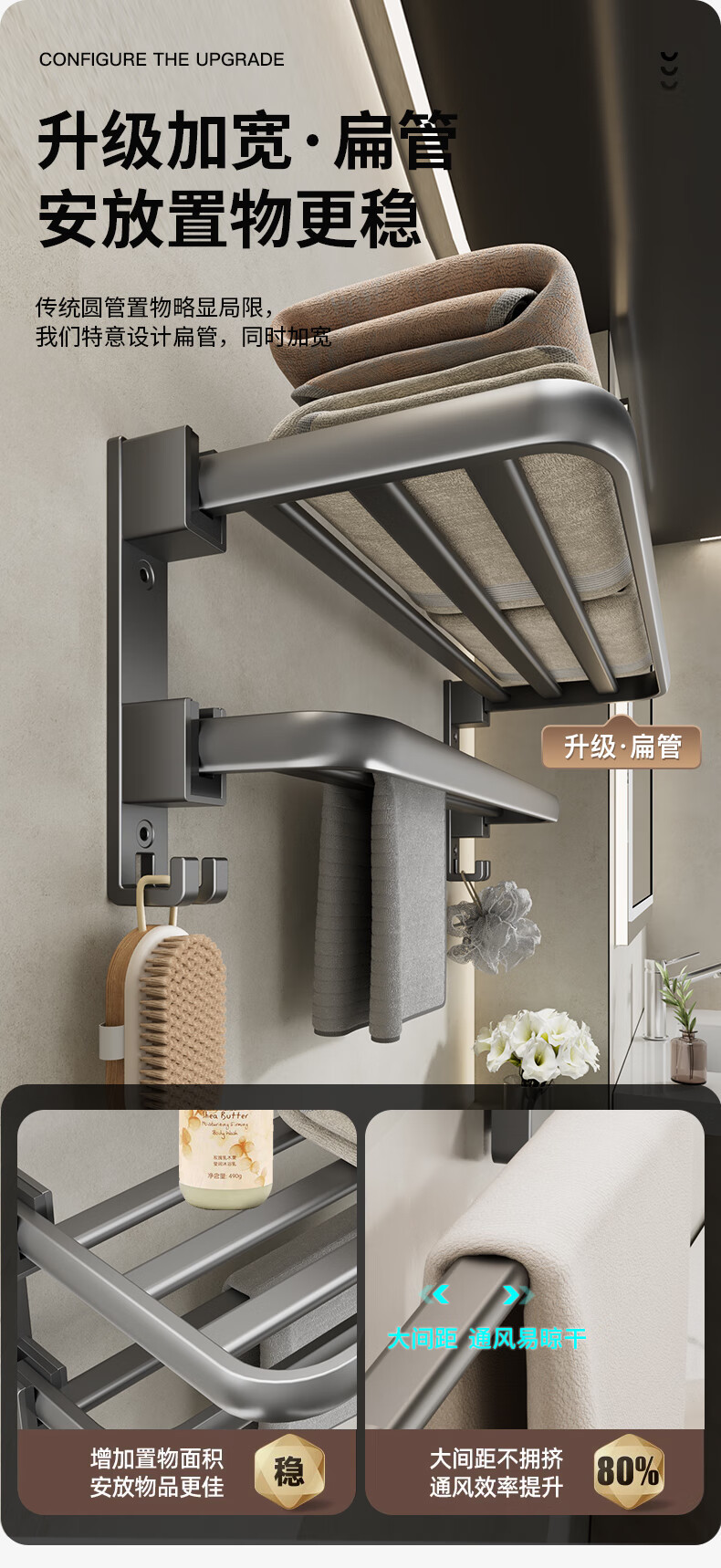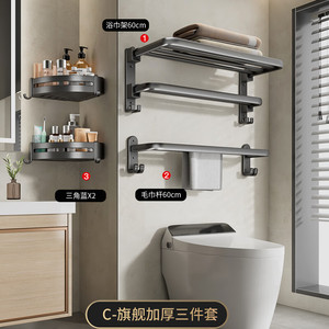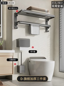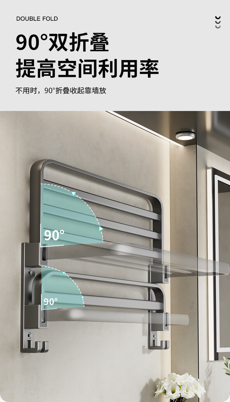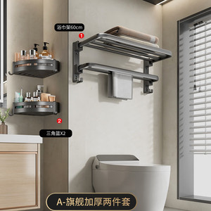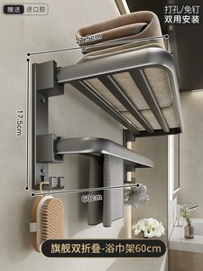 【旗艦雙折疊】槍灰浴巾架60cm