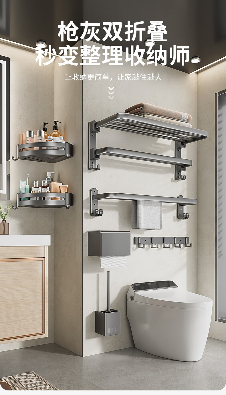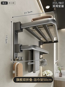 【旗艦雙折疊】槍灰浴巾架50cm