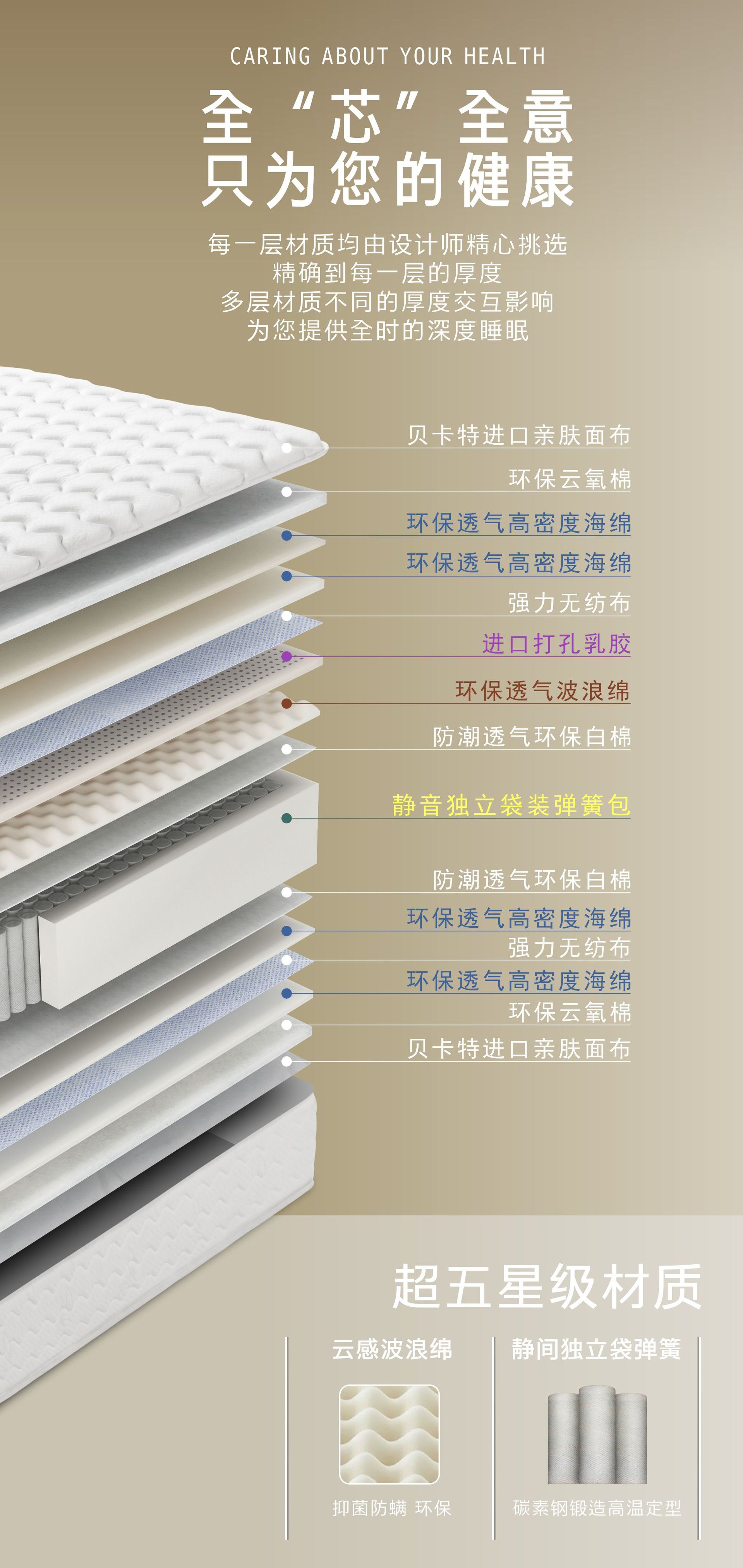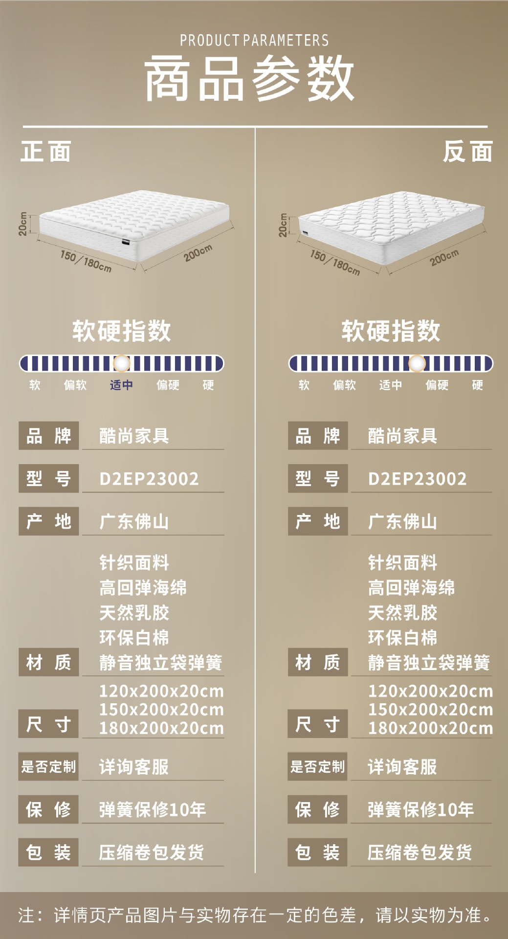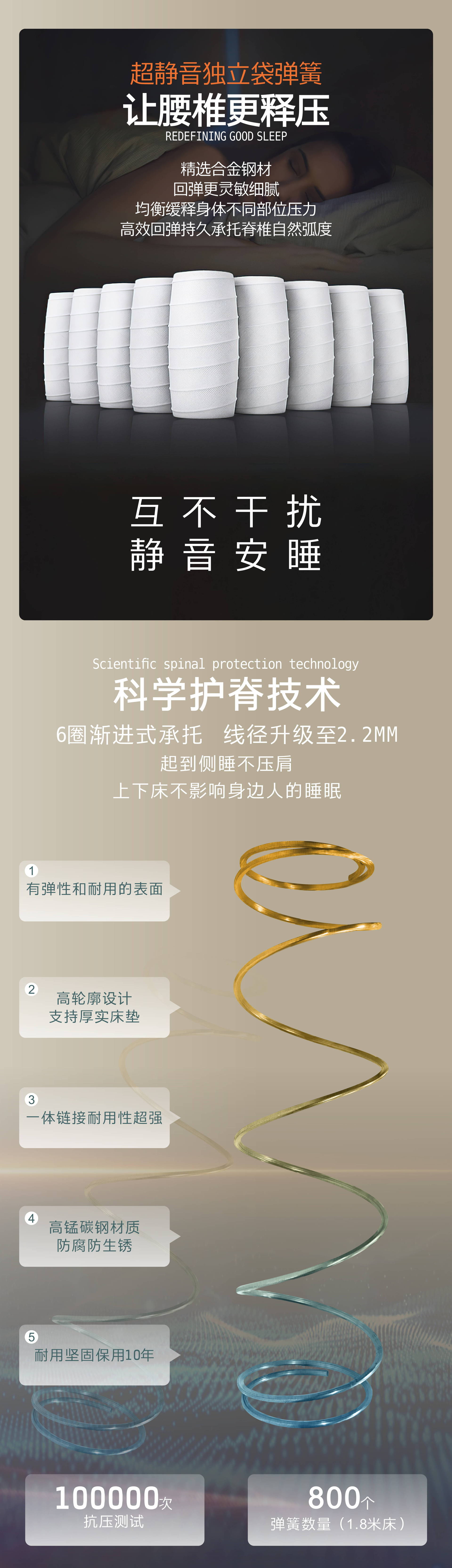 20cm厚度雙面雙硬度乳膠彈簧床墊星級飯店同款/靜音獨立袋床墊兩面雙硬度可睡多尺寸滾筒卷包裝