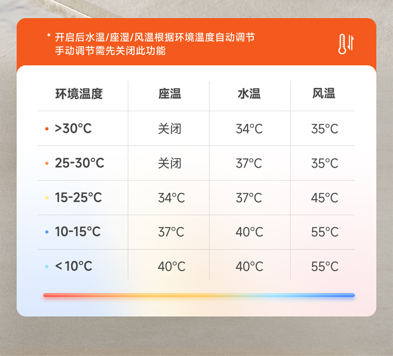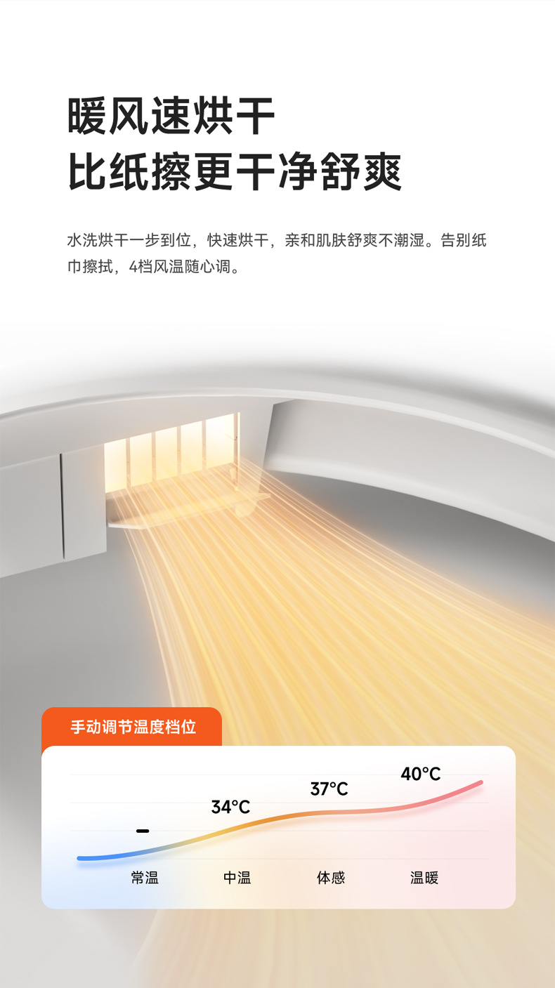 附加功能 :遙控、烘乾、即熱型、自動翻蓋、臀部洗淨、女性洗淨、噴嘴自潔、自動除臭、噴嘴移動清洗、調節水壓、加熱水溫、調節暖風、無水壓限制