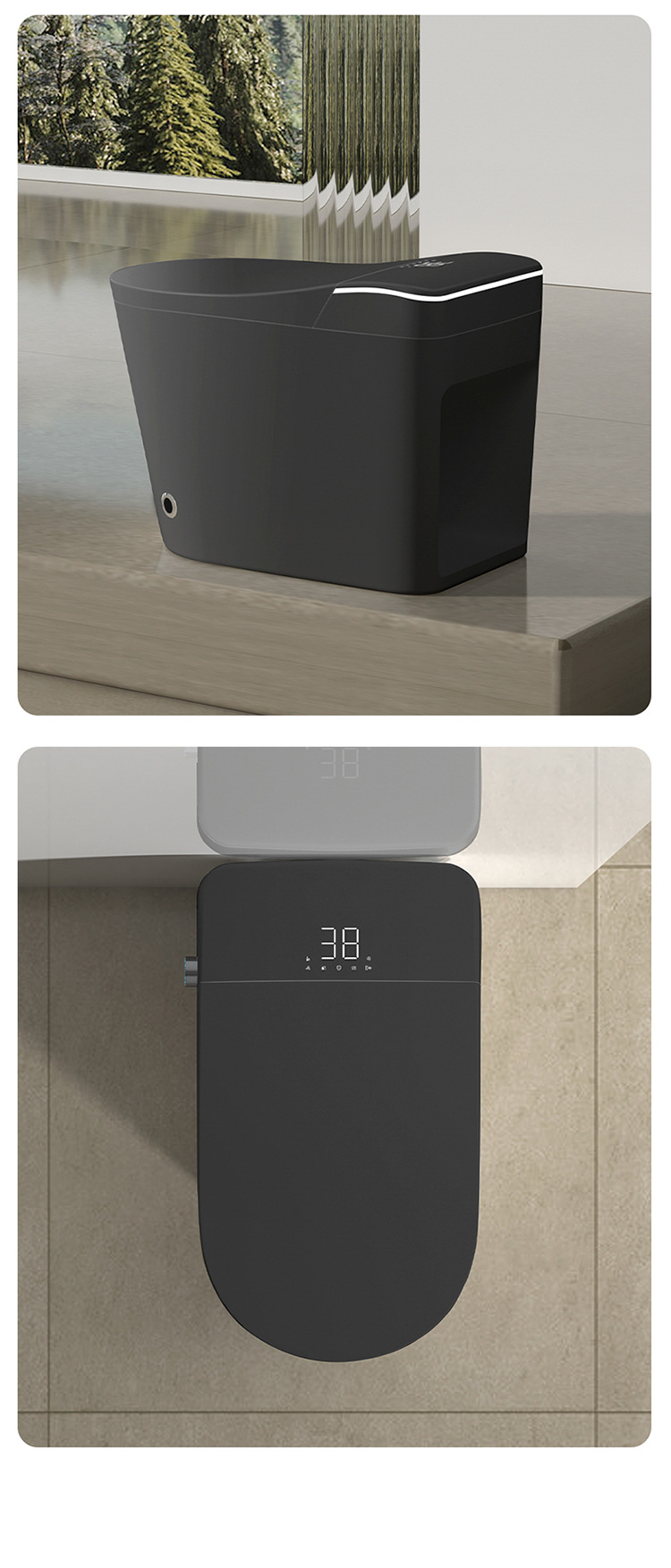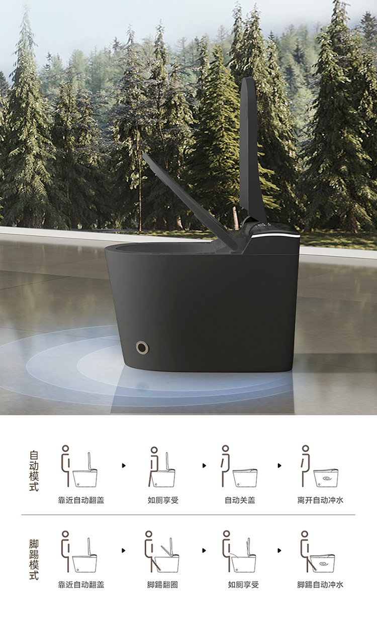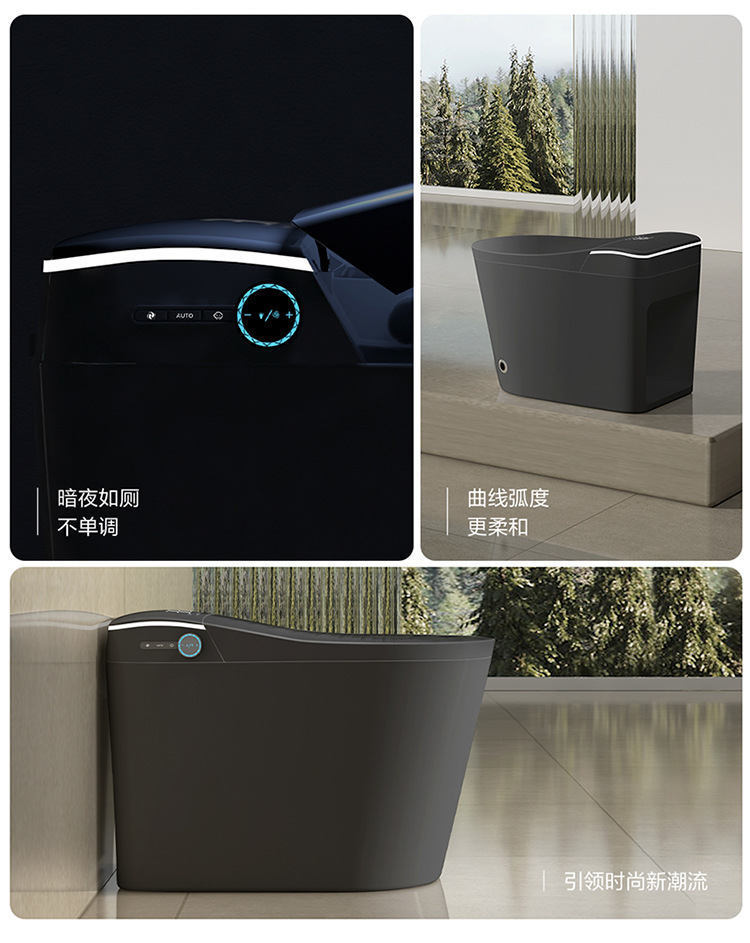 黑色全自動智能馬桶|遙控|恒溫智能|一體式通用|烘乾殺菌|語音泡沫盾|座便器