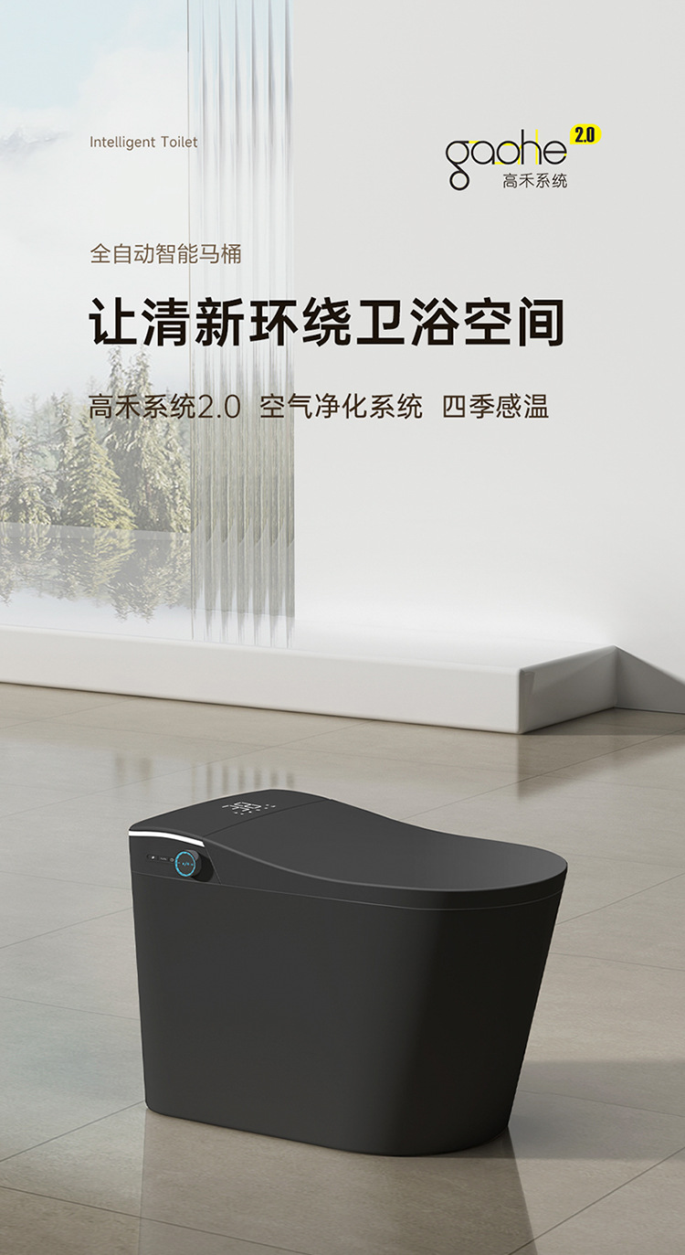 商品名稱:黑色全自動智能馬桶|遙控|恒溫智能|一體式通用|烘乾殺菌|語音泡沫盾|座便器