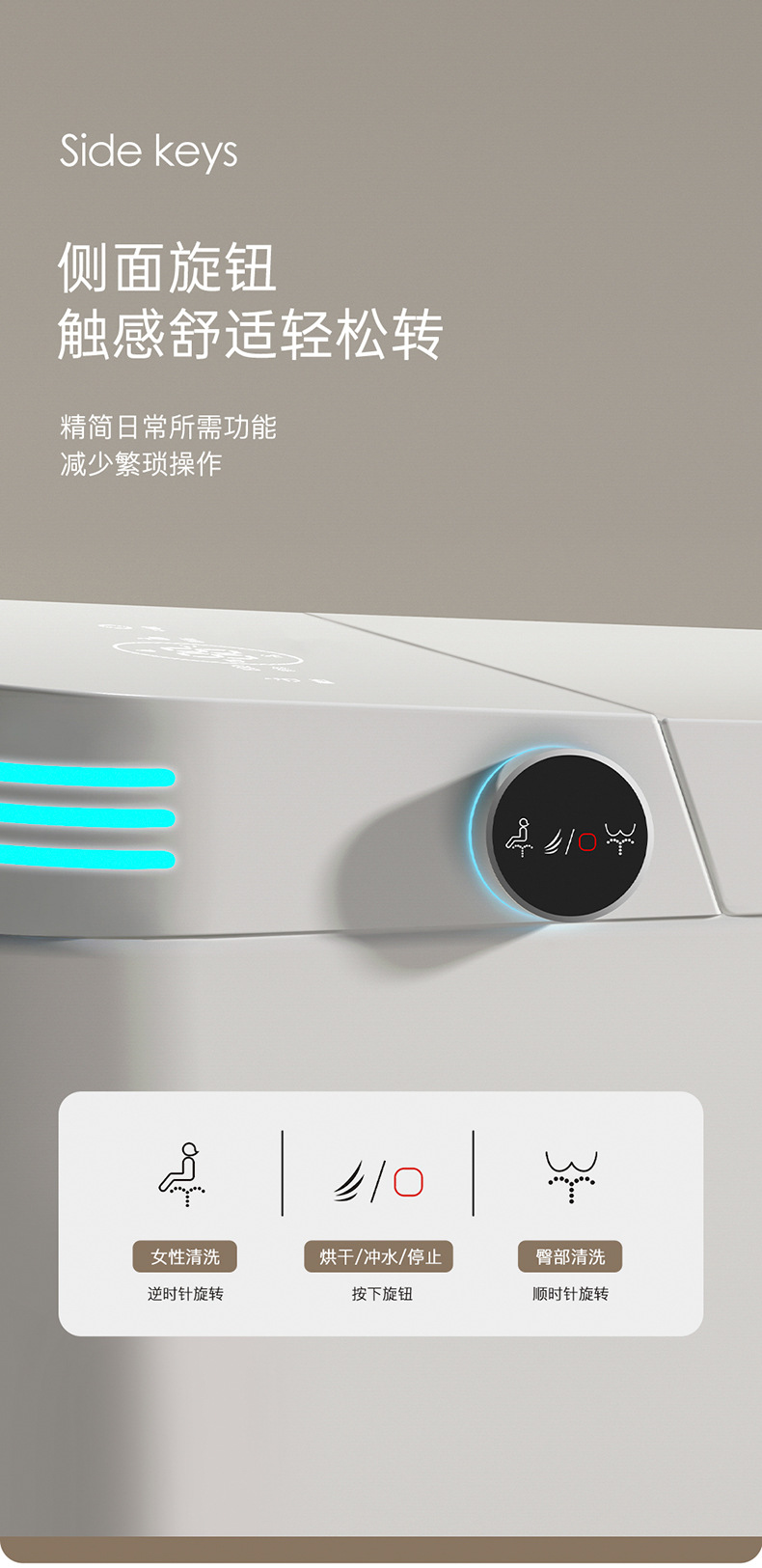 遙控,烘乾,即熱型,自動翻蓋,臀部洗淨,女性洗淨,噴嘴自潔,自動除臭,噴嘴移動清洗,調節水壓,加熱水溫,調節暖風,無水壓限制