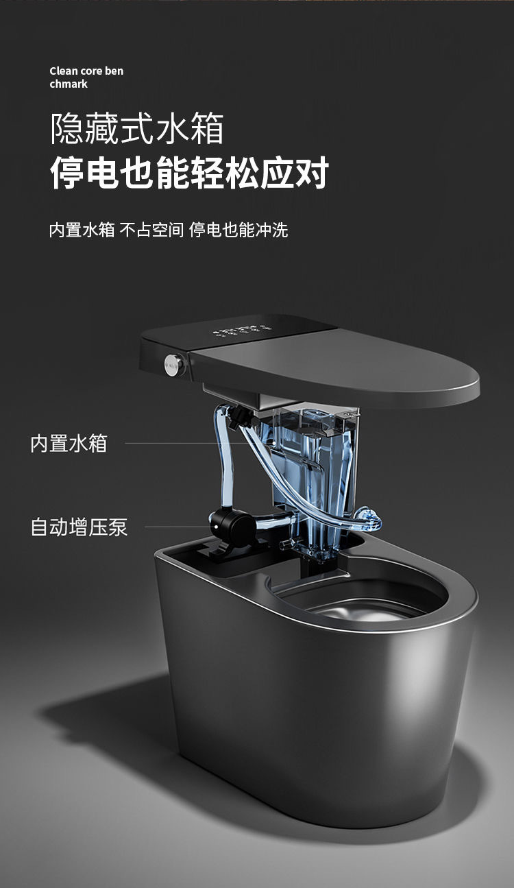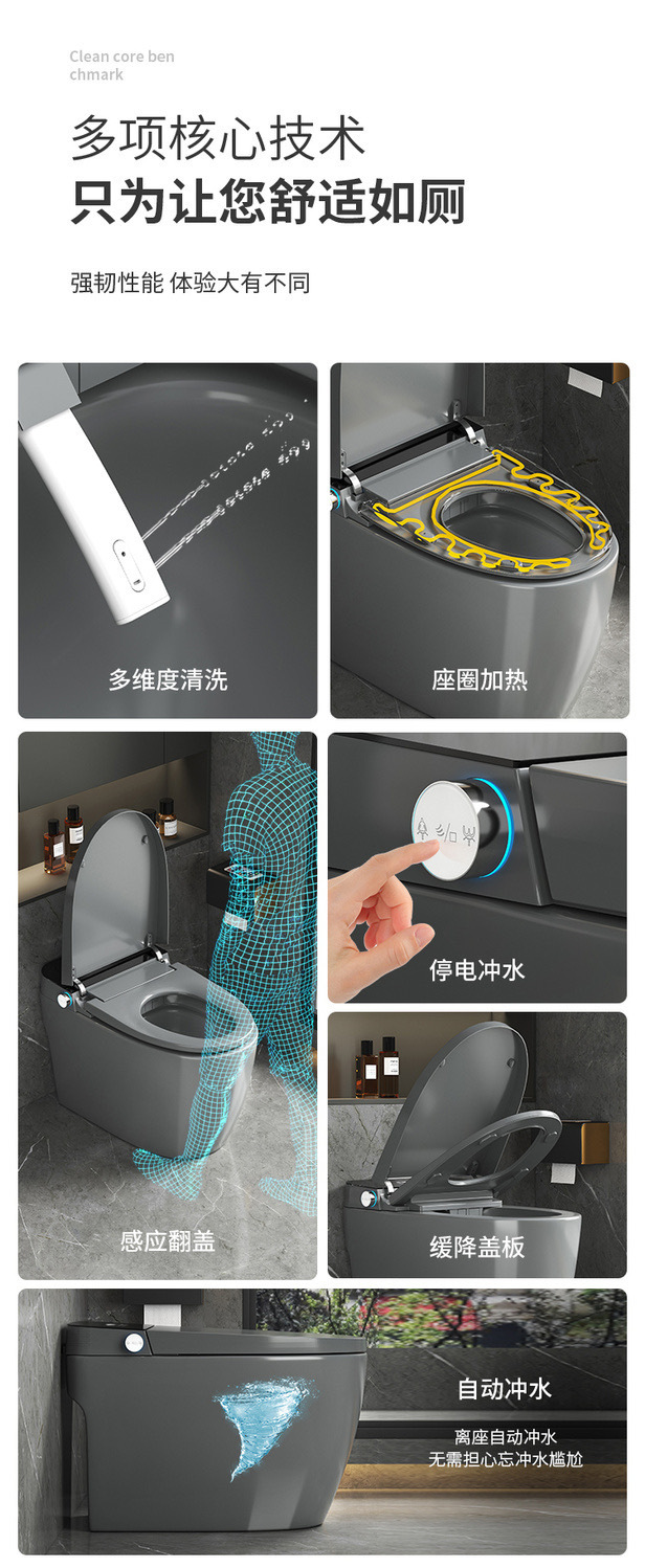 即熱式智能馬桶|家用電動坐便器|帶水箱|灰色|座圈可烘乾加熱|坐便器