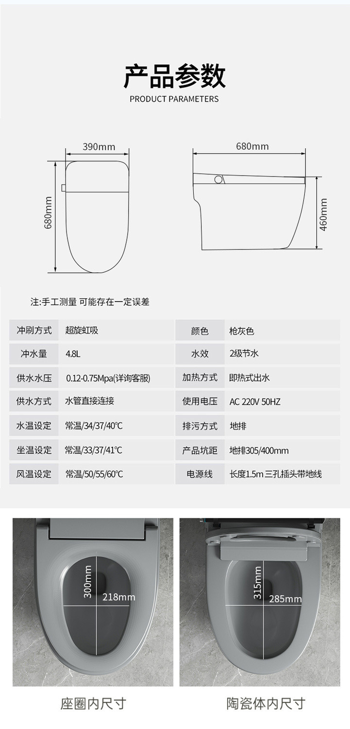 商品名稱:即熱式智能馬桶|家用電動坐便器|帶水箱|灰色|座圈可烘乾加熱|坐便器