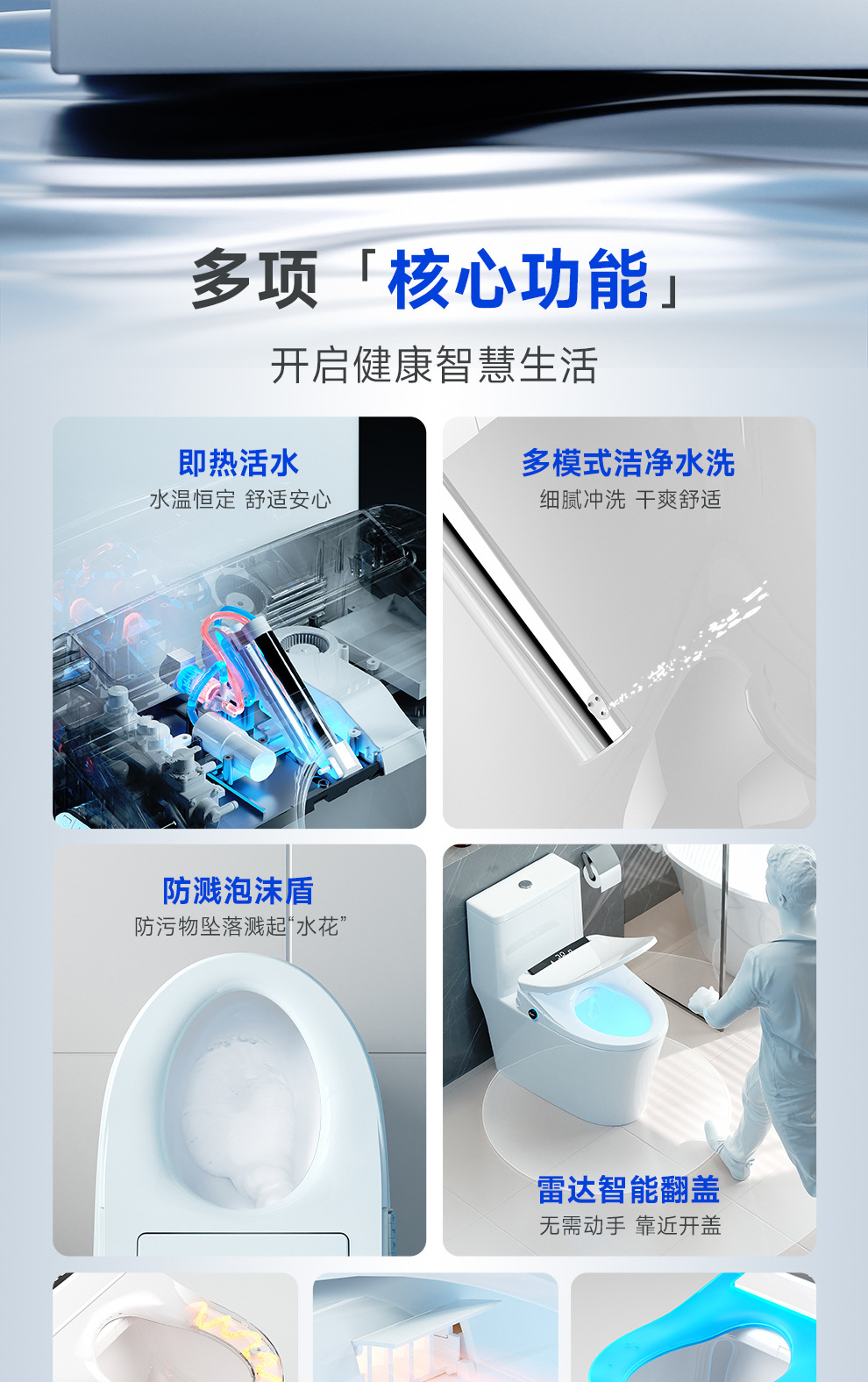 智能自動馬桶|遙控泡沫盾|防濺沖洗|智能坐便|陶瓷下沈水箱|無水壓限制