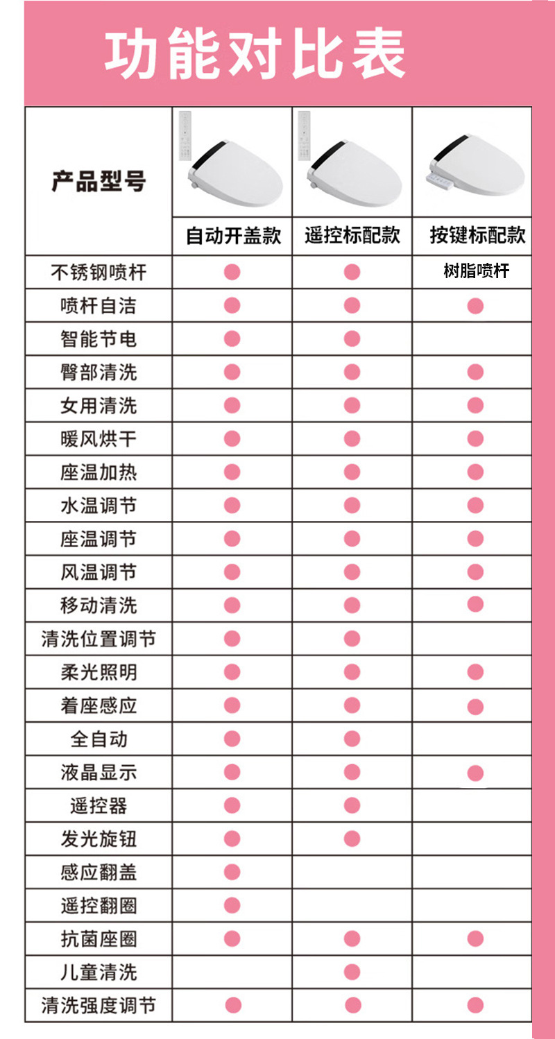 即熱型,水溫調節,臀部洗淨,女性洗淨,座圈加熱,水壓調節,暖風烘乾,噴嘴自潔,移動清洗,遙控噴嘴,19037921829