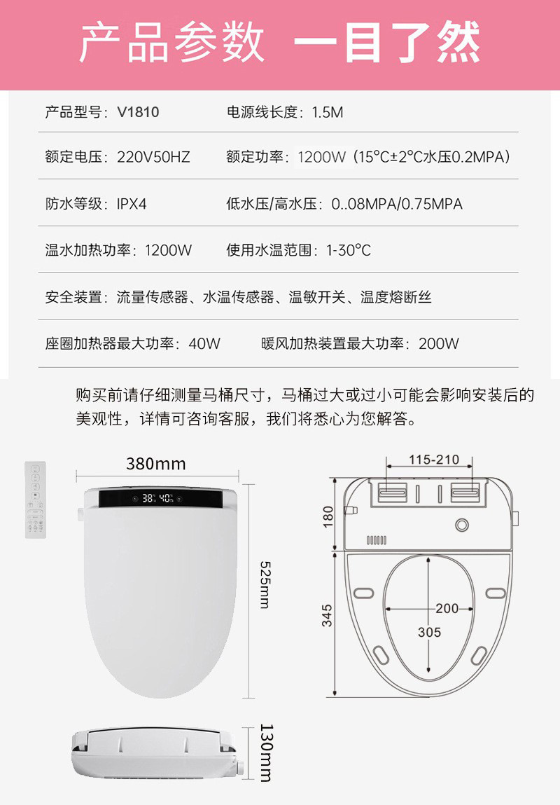 附加功能 :即熱型,水溫調節,臀部洗淨,女性洗淨,座圈加熱,水壓調節,暖風烘乾,噴嘴自潔,移動清洗,遙控噴嘴,19037921829