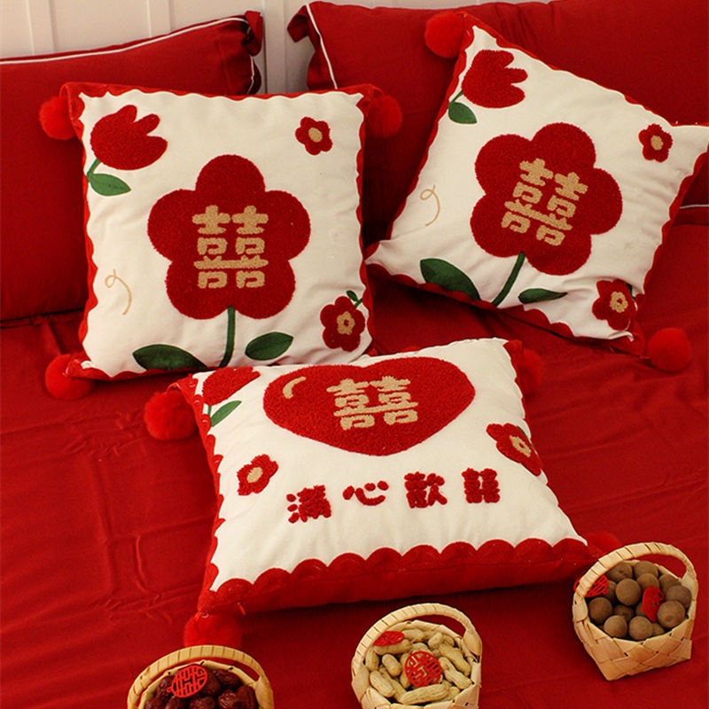 婚房布置结婚喜字抱枕一对床上客厅沙发装饰靠背垫枕婚庆用品大全