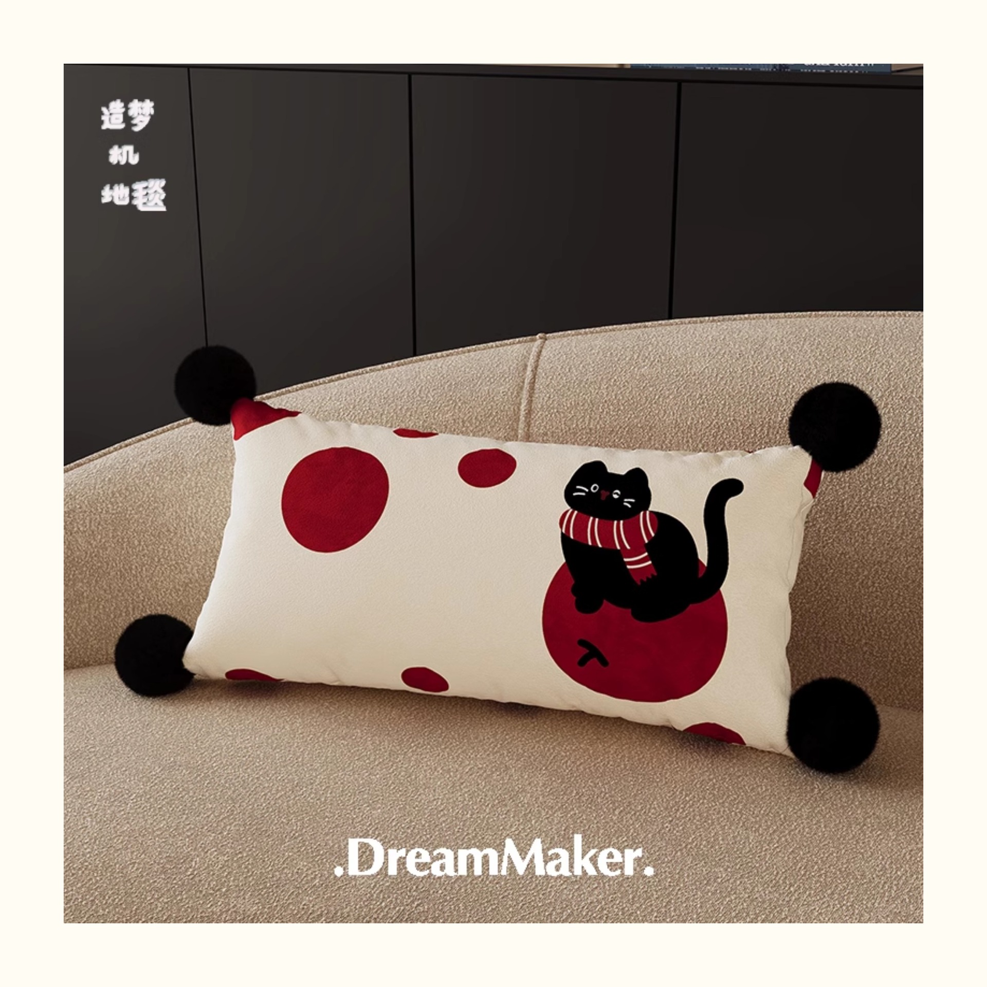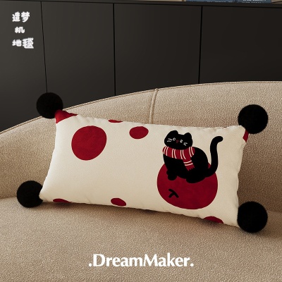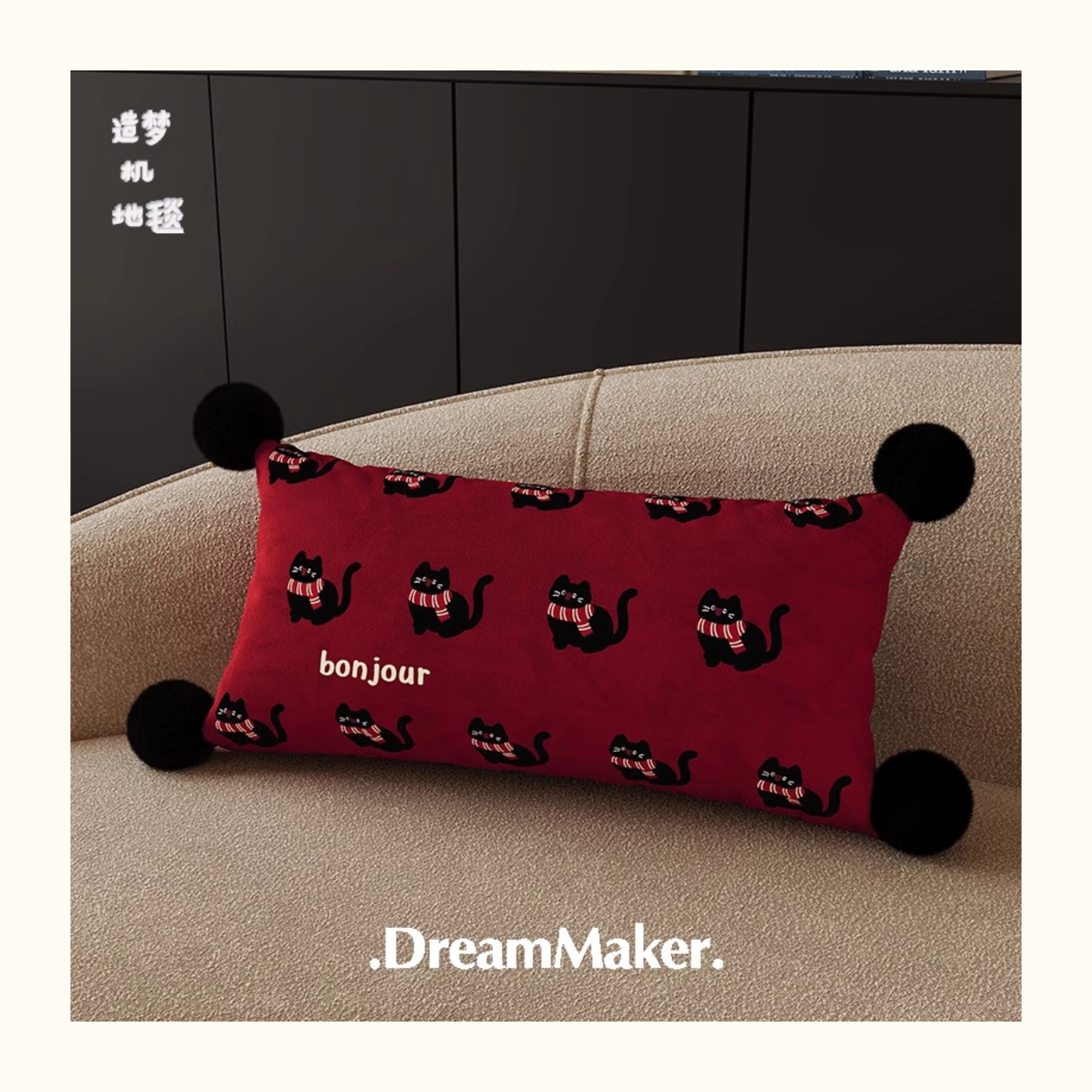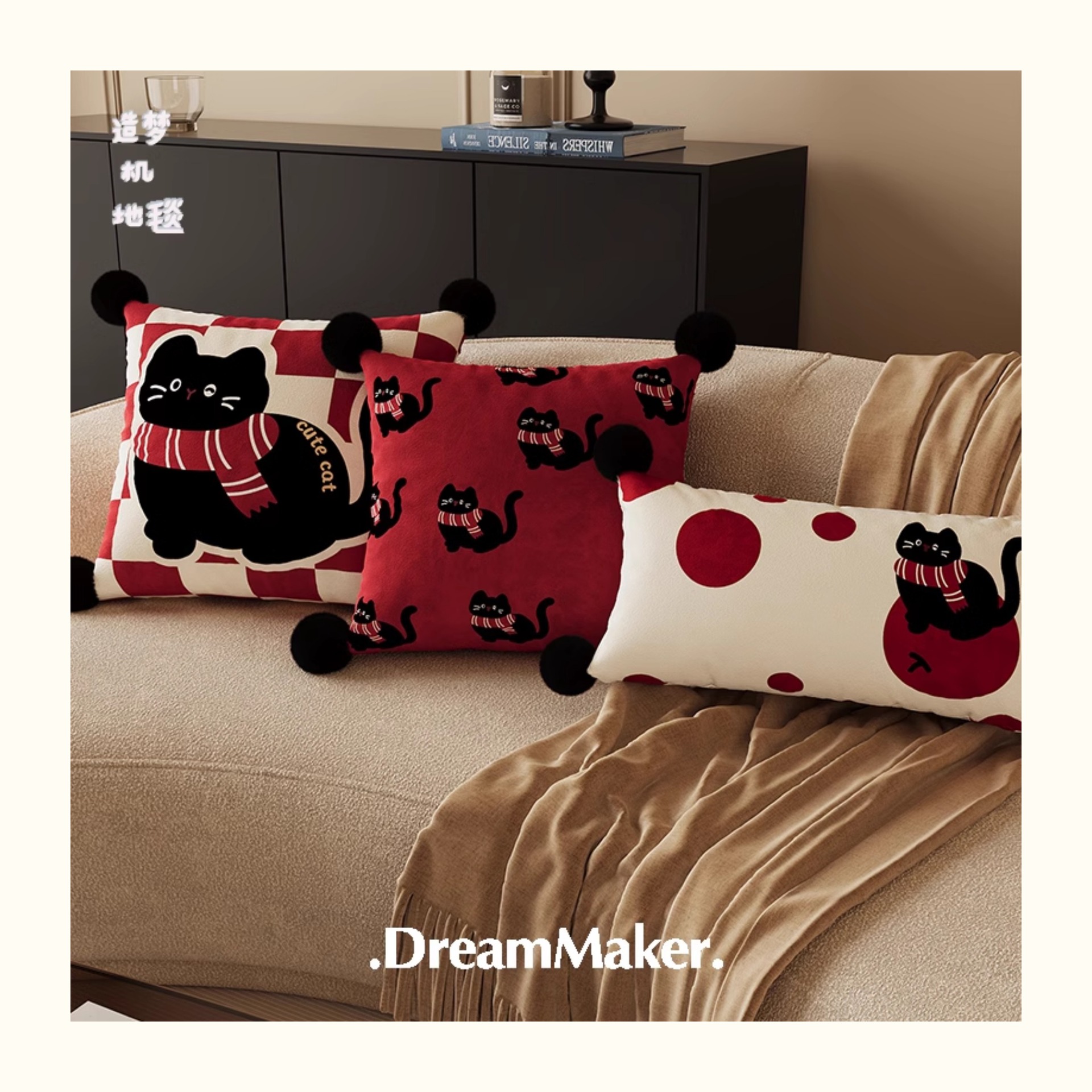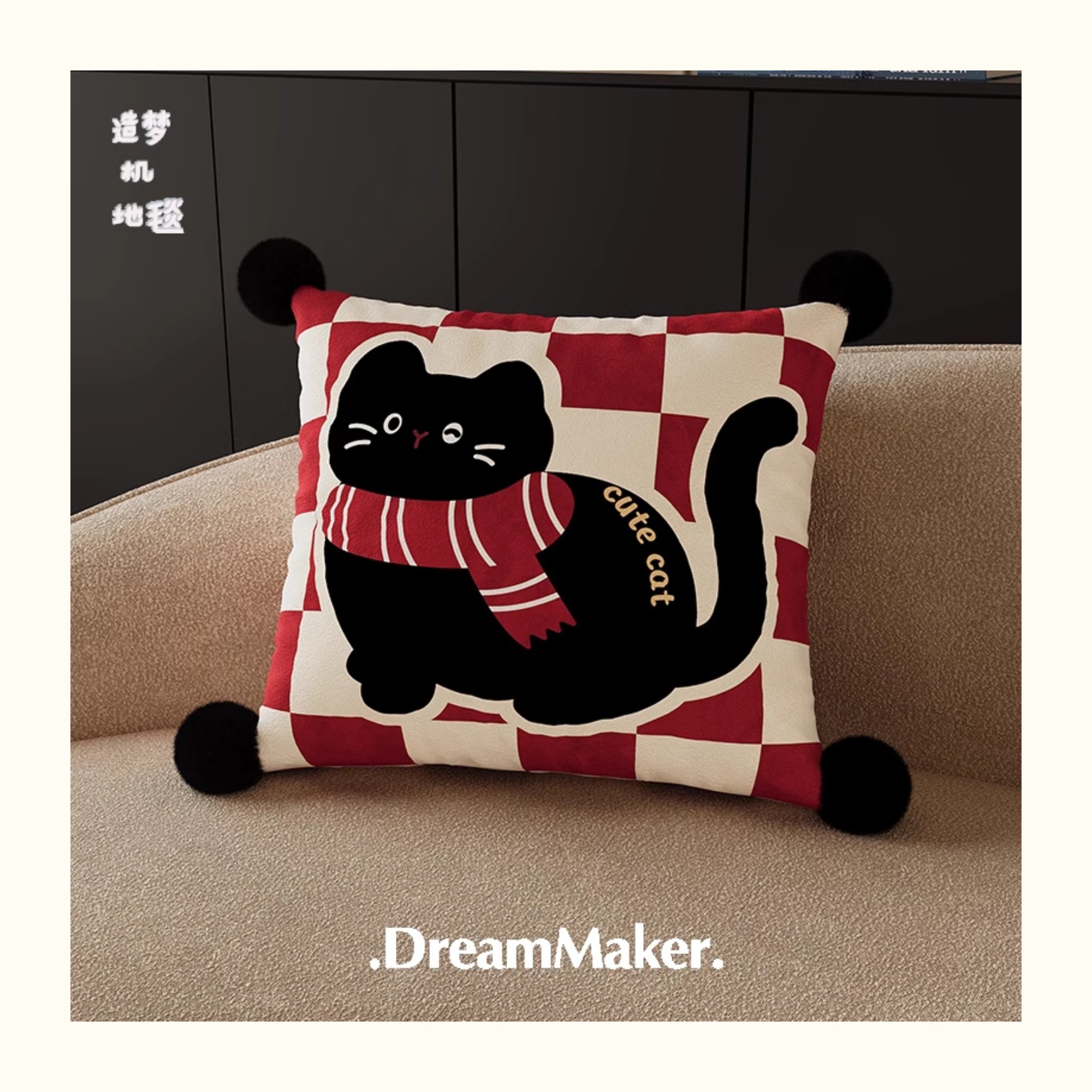 商品名稱:2025红色新年小猫抱枕加厚荷兰绒方形可拆卸枕套卡通印花靠枕批发