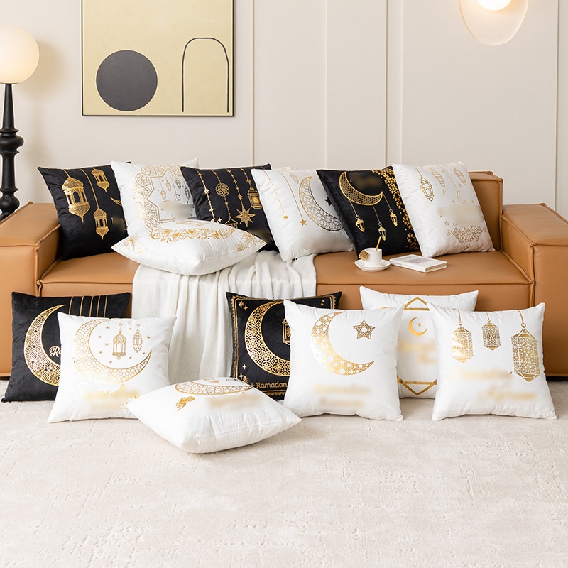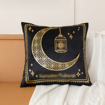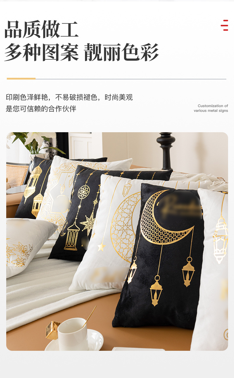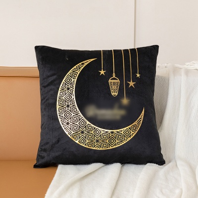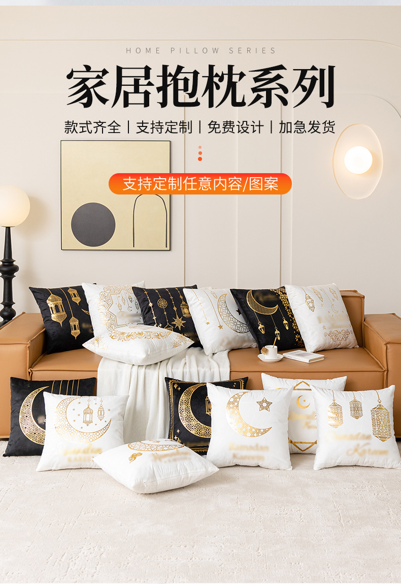 跨境轻奢古典金色月亮烫金抱枕靠腰黑白烫金短毛绒抱枕套沙发靠垫