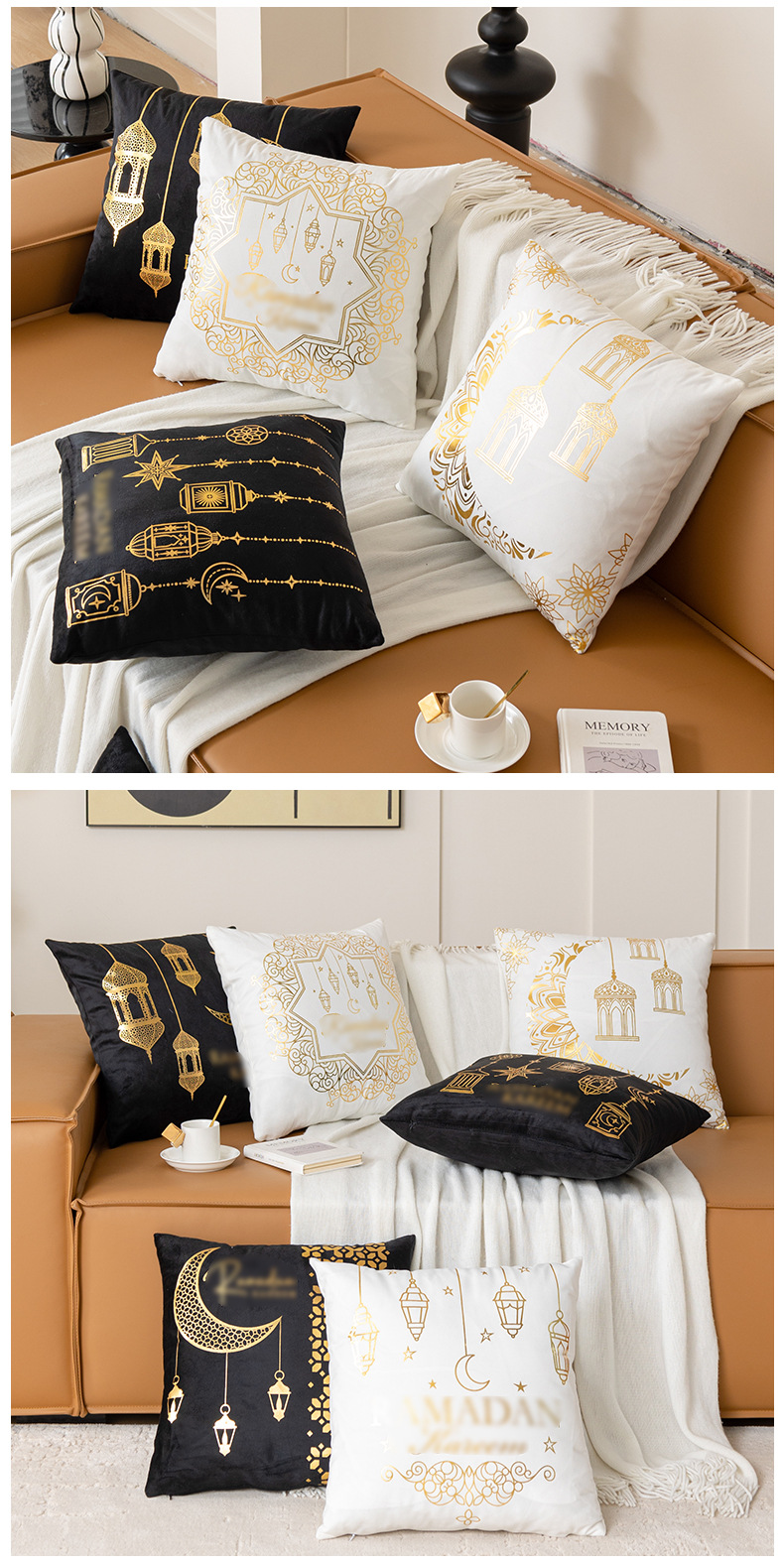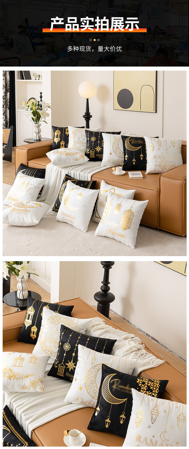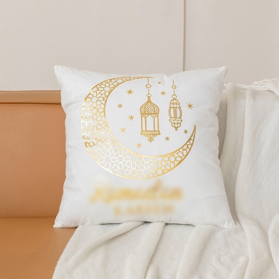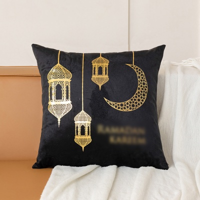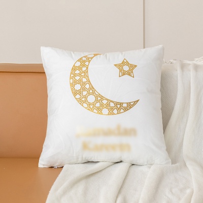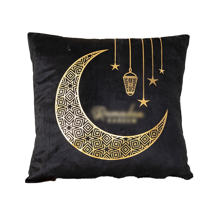 跨境轻奢古典金色月亮烫金抱枕靠腰黑白烫金短毛绒抱枕套沙发靠垫