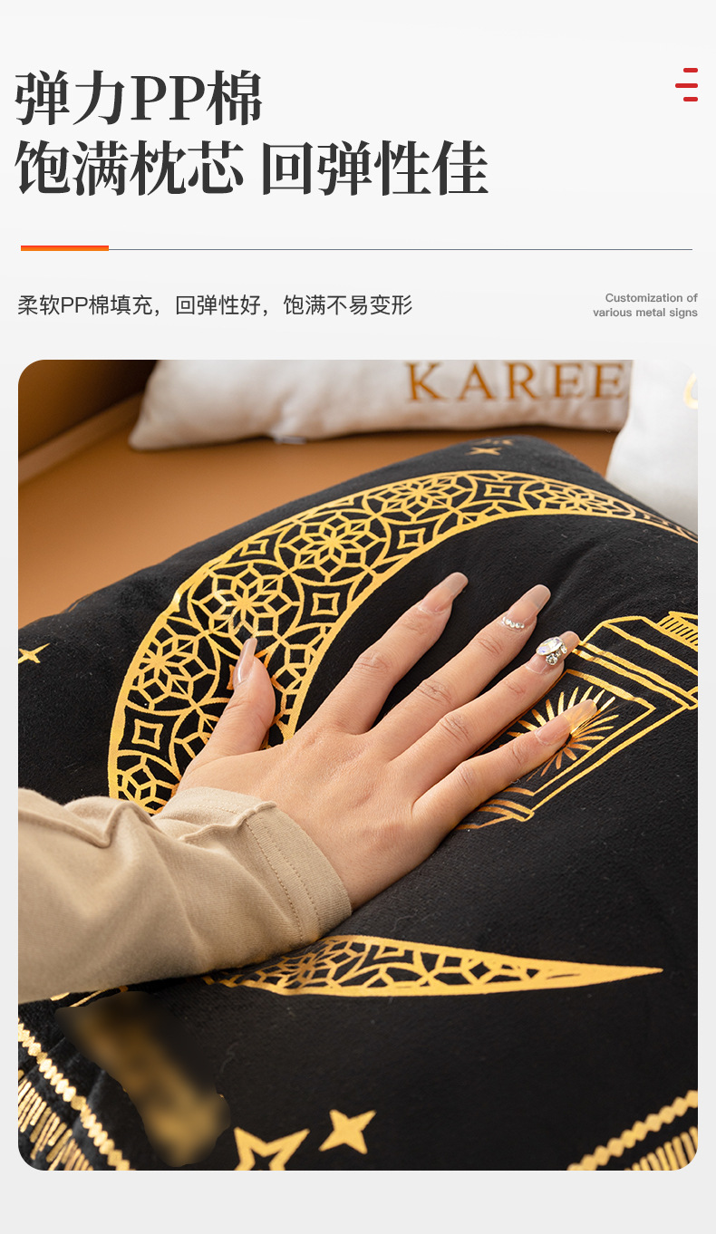 商品名稱:跨境轻奢古典金色月亮烫金抱枕靠腰黑白烫金短毛绒抱枕套沙发靠垫