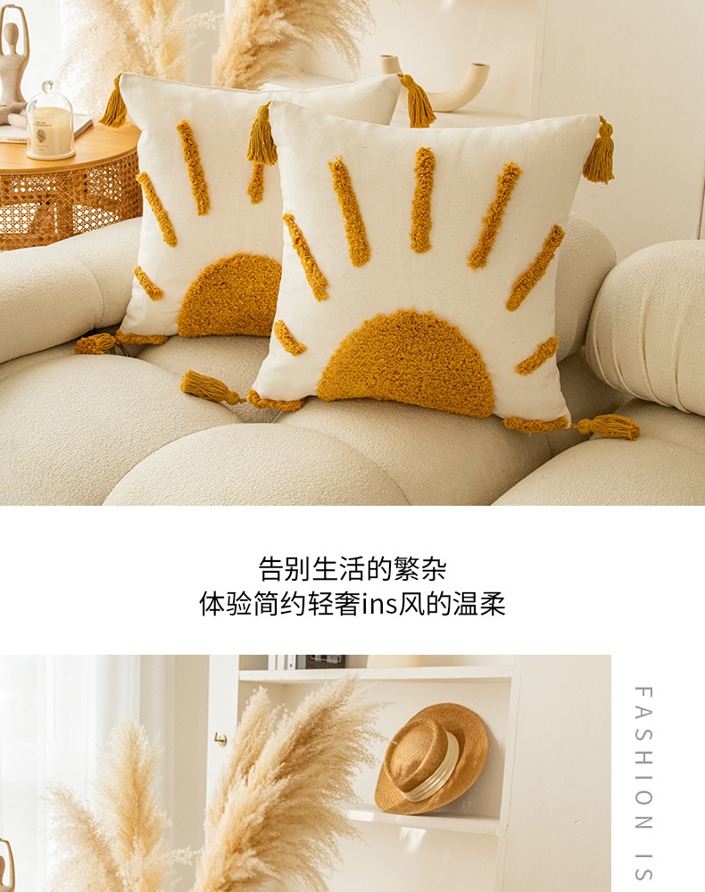 商品名稱:严选波西米亚金色太阳抱枕浪漫阳光流苏圈绒靠枕卧室沙发家用靠垫