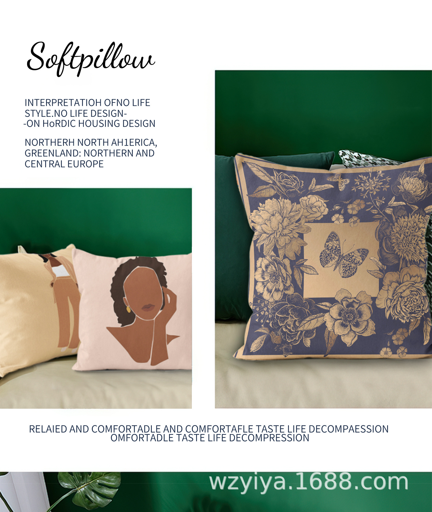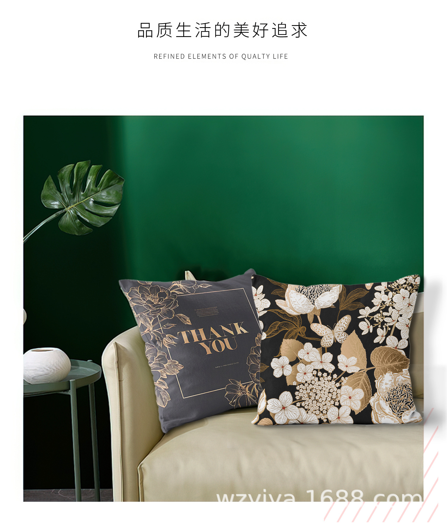 复古烫金花纹抱枕简约现代家居沙发靠背垫装饰可拆洗方形床头靠枕
