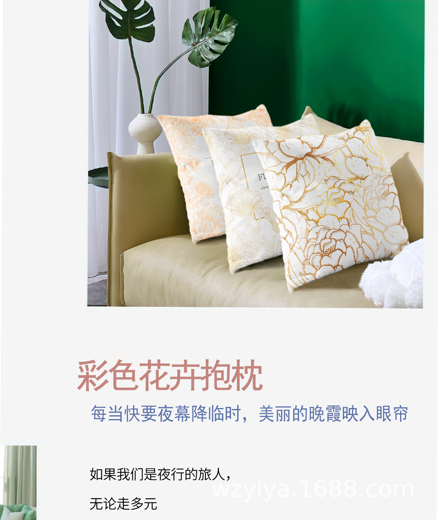 商品名稱:复古烫金花纹抱枕简约现代家居沙发靠背垫装饰可拆洗方形床头靠枕