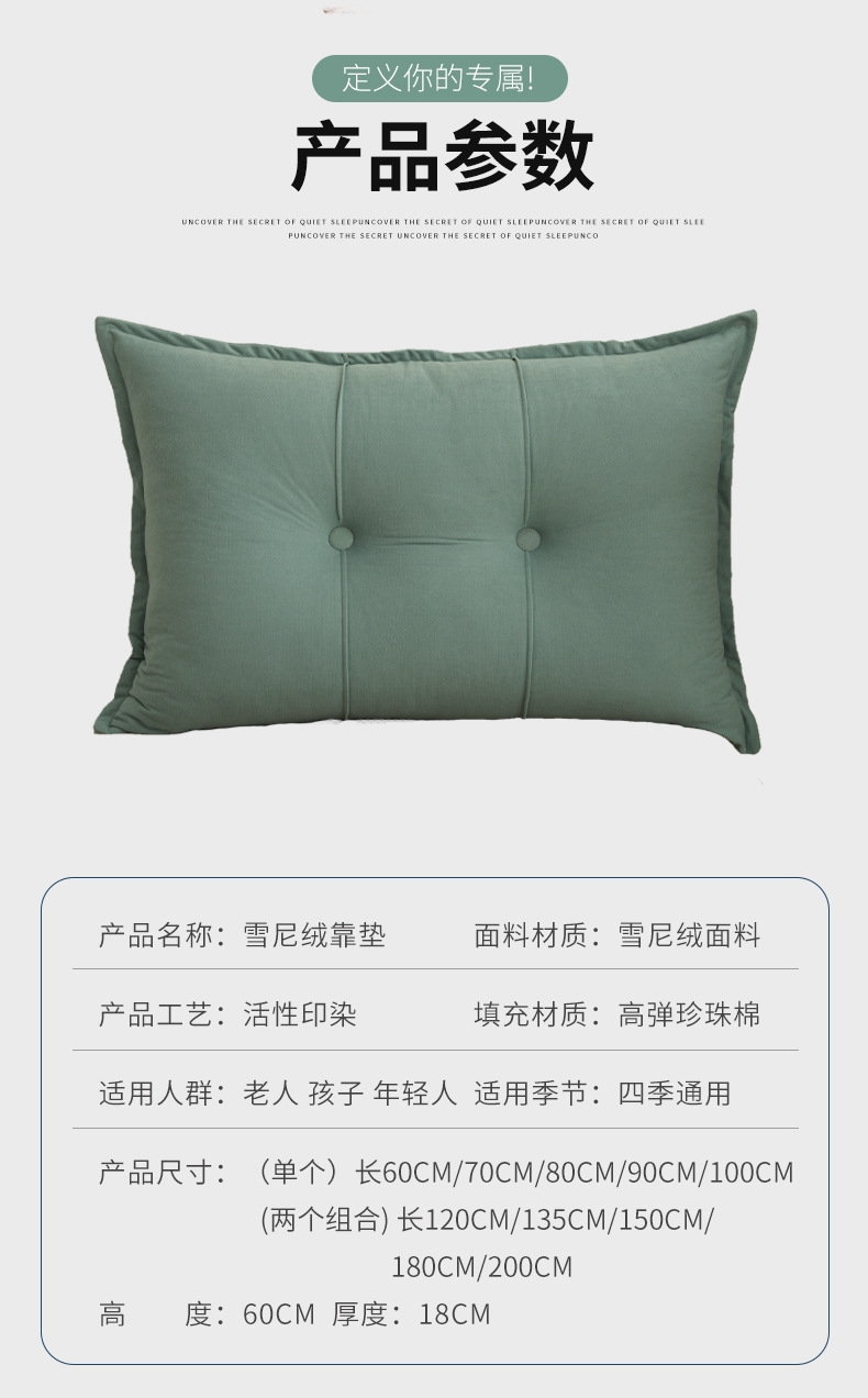 商品名稱:雪尼绒床头软包大靠背卧室双人靠垫靠背枕床上沙发靠垫护腰可拆洗