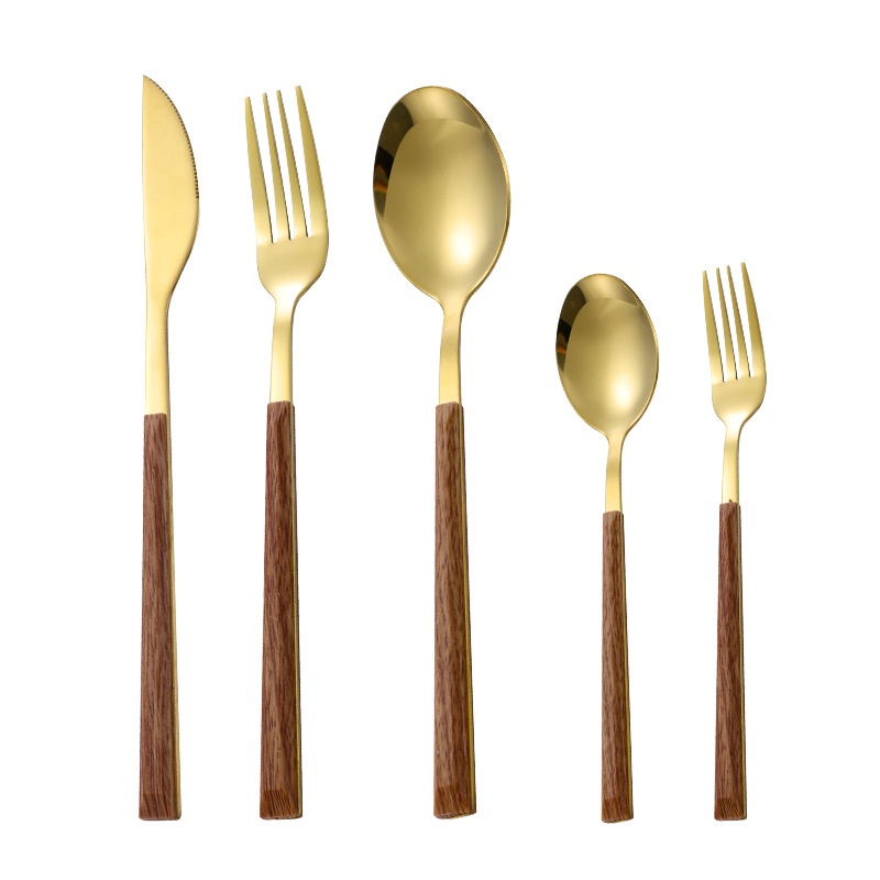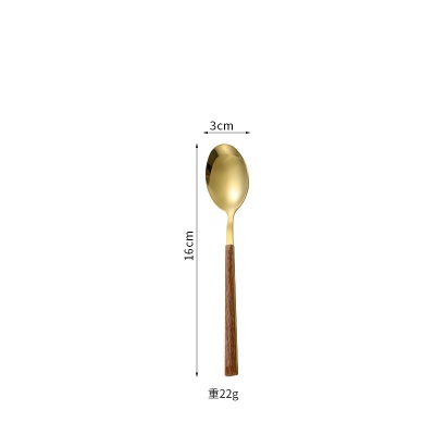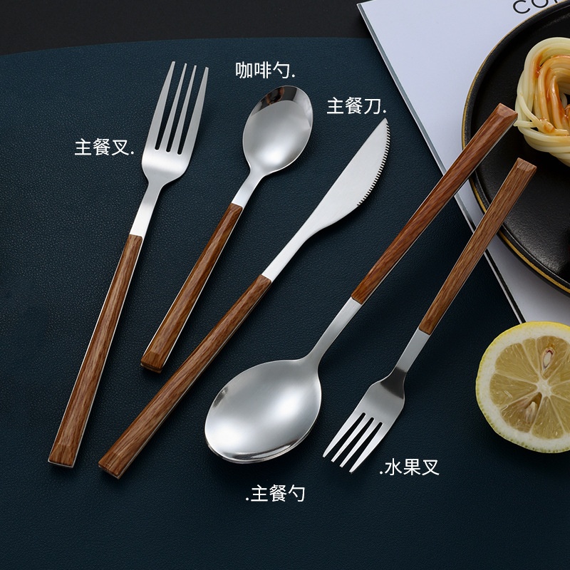 商品名稱:礼品盒木纹韩式勺夹柄家用刀叉勺餐具 酒店牛排刀 套装不锈钢勺子