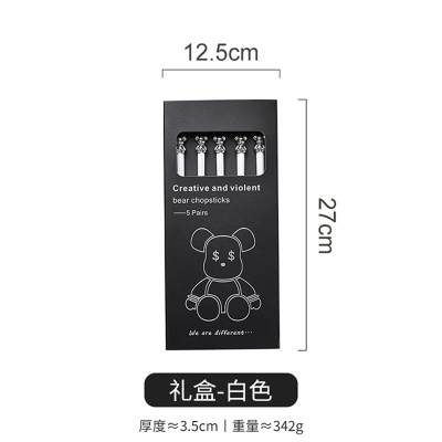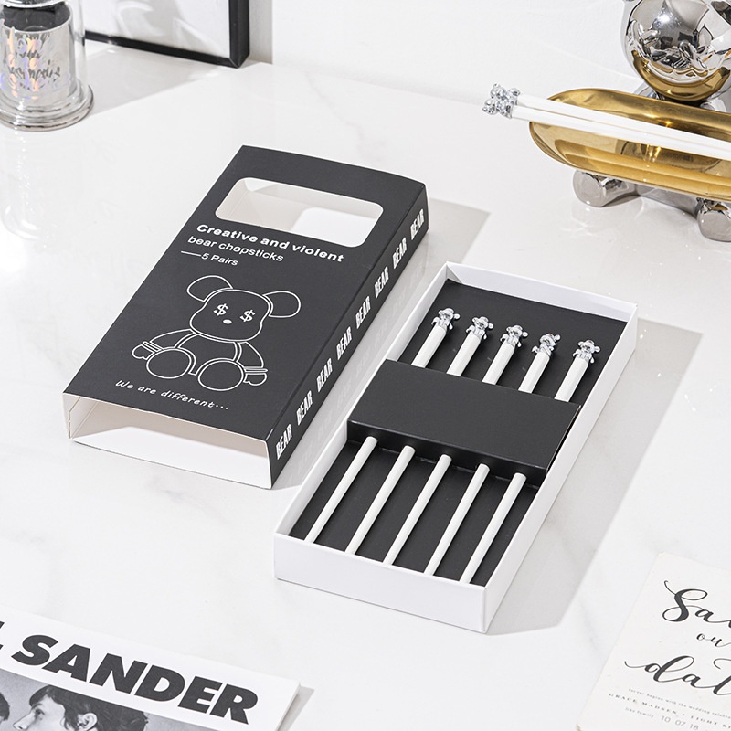 创意合金小熊陶瓷筷子易清洗白色简约五双家庭装瓷筷骨瓷筷子logo