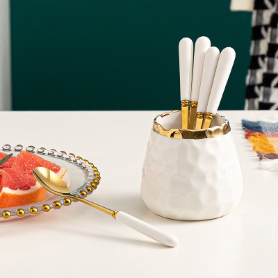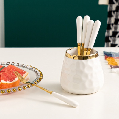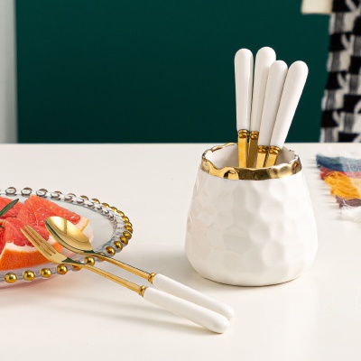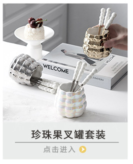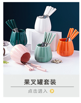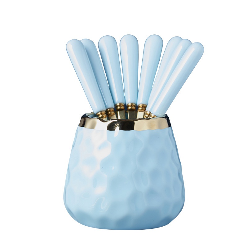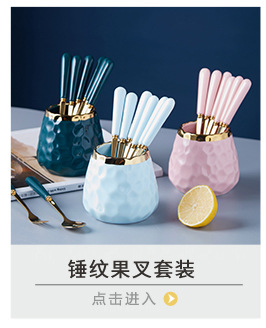 - 商品名稱:跨境水果叉勺锤纹陶瓷收纳罐套装家用不锈钢水果签子甜品叉子批发